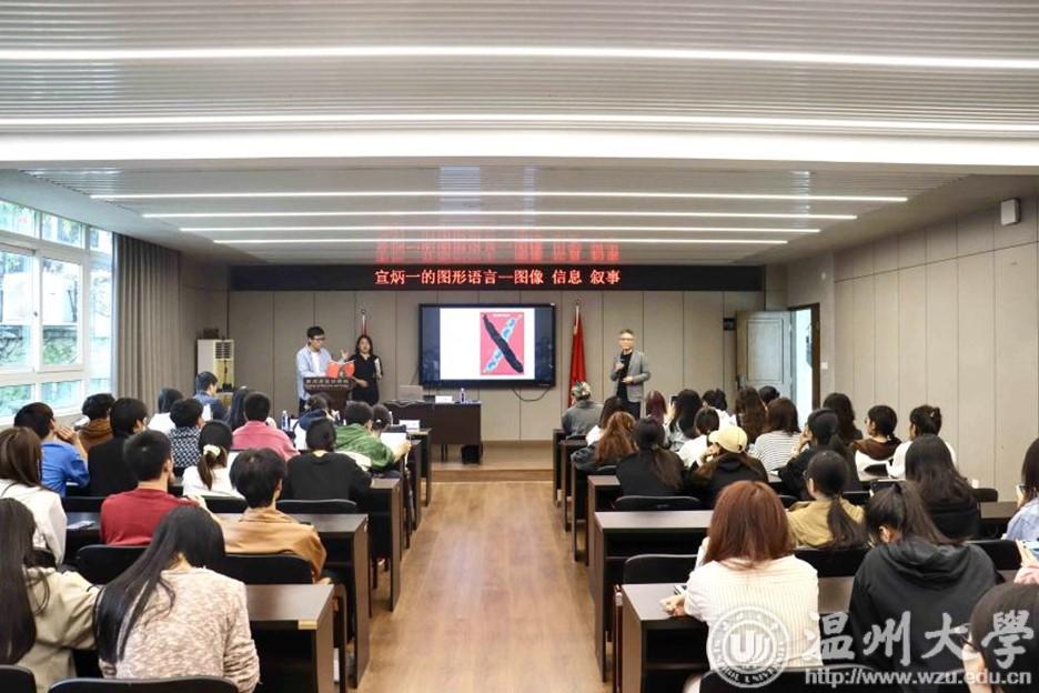 在美术楼4001学术报告厅,宣教授为开云官网设计学专业师生开展以“图形语言——图像.信息.叙事”为主题的讲座,讲座由视觉传达设计系主任刘俊主持。宣炳一教授通过一系列获奖作品讲解让学生们充分了解如何在平面设计中利用符号化语言进行叙事,如何以适当造型语言、色彩搭配、构图等手法巧妙的传达图像信息。讲座使学生们感受到海报设计的魅力,习得新的设计思维与方式。有助于学生形成良好的设计思维习惯,让学生受益良多。