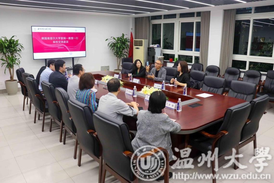 10月27日,韩国南首尔大学终身名誉教授、韩国美术协会会长、韩国视觉设计协会会长、博士生导师宣炳一教授一行4人来访kaiyun开云官方网站。学院副院长顾任飞教授、视觉传达设计系主任刘俊、环境设计系主任黄玫玮以及学院设计学、艺术设计硕士研究生、视觉传达系师生共60多人参加交流活动,共同探讨视觉设计专业建设等相关问题。