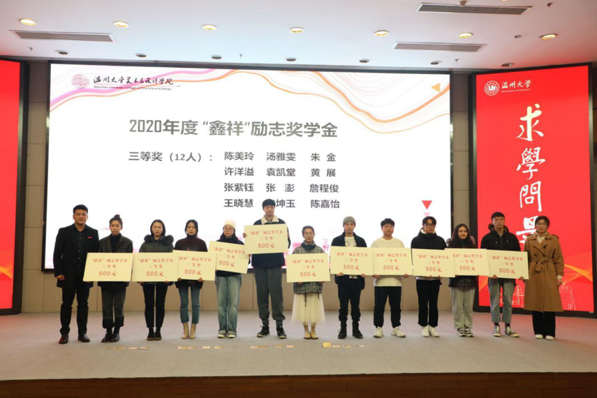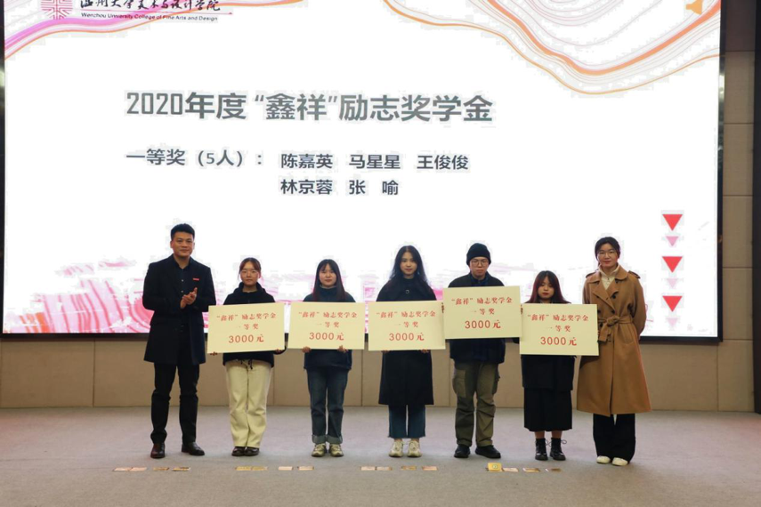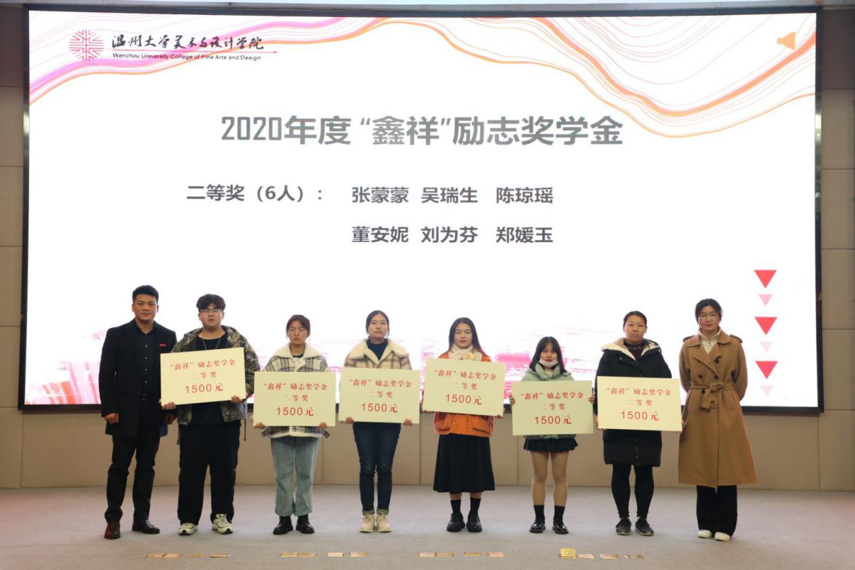 学院的文化活动和人才培养得到了企业的大力支持和帮助,浙江鑫祥印业有限公司和浙江龙兴彩虹置业有限公司等企业专程为开云官网学子设立励志奖学金,激励学院在学习、创业、升学等方面取得较大成绩的学子。现场进行了“鑫祥”励志奖学金和“龙兴彩虹”励志奖学金颁奖仪式。