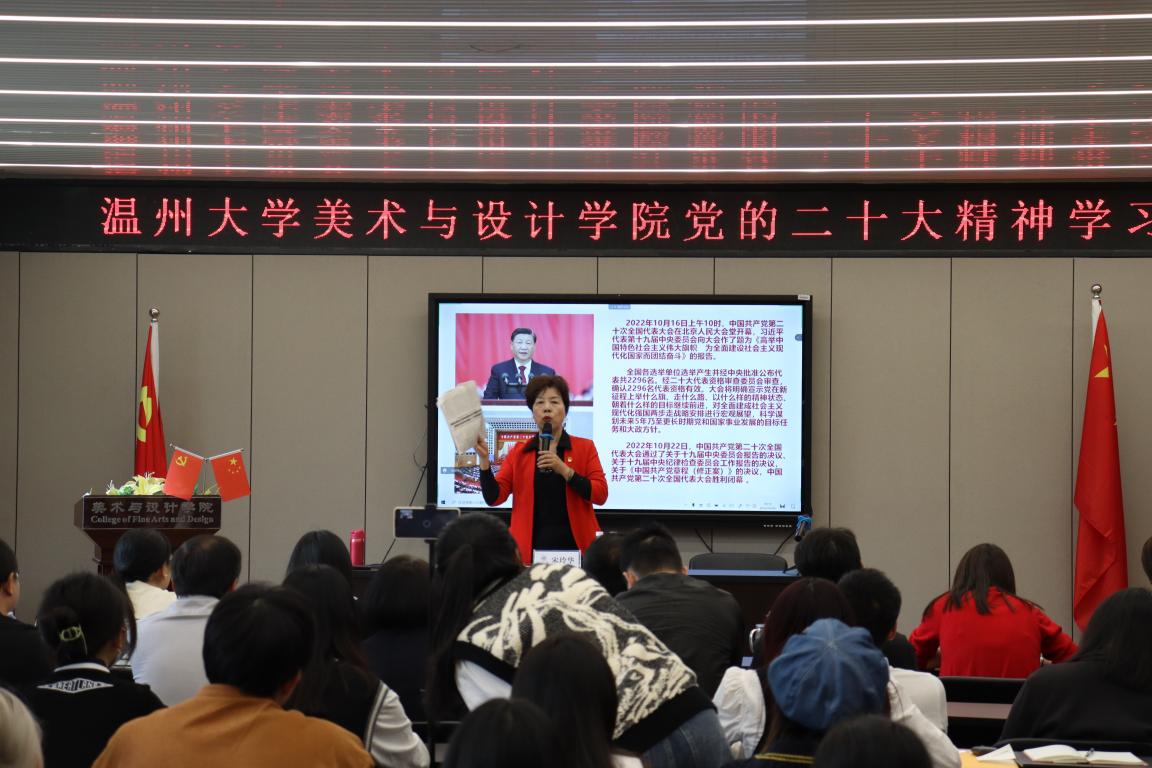 为深入学习宣传贯彻党的二十大精神,感悟思想伟力,汲取奋进力量,引导全院师生切实把思想和行动统一到党的二十大的精神上来,10月26日下午,kaiyun开云官方网站组织开展党的二十大精神学习会,特邀党的十九大代表宋玲华同志为学院全体师生作“学习感悟党的二十大精神”专题宣讲报告。会议由学院党委书记叶正飞主持,近500名师生线上线下参加学习活动。 宋玲华老师是党的十九大代表,市妇联执委,瓯海区关工委主任,瓯海区慈善总会副会长,瓯海乡村艺术团联合会主席,宋玲华党代表工作室负责人,浙江省关心下一代报告团成员,温州银耀瓯越宣讲员,温州老干部大学流动红色能源站讲师,宋玲华宣讲工作室负责人。 学习会上,宋老师从一名党代表的视角、一名退休党员的视角、一名公益先锋的视角,全面分析讲解党的二十大报告内容,分享了二十大精神的内涵理解和学习体会。她指出党的二十大是在全党全国各族人民迈上全面建设社会主义现代化国家新征程、向第二个百年奋斗目标进军的关键时刻召开的一次十分重要的大会,是一次高举旗帜、凝聚力量、团结奋进的大会,在党和国家发展进程中具有极其重大的历史意义。党的二十大报告,为党和国家事业描绘了清晰的发展路线,擘画了宏伟的发展蓝图,充分彰显了我们党坚如磐石的历史自信、举旗定向的政治担当和高瞻远瞩的战略视野,是我们党团结带领全国各族人民在新时代新征程坚持和发展中国特色社会主义的政治宣言和行动纲领。 “我要把党的‘好声音’传递到基层群众,传递给青年学生,这是我的职责和使命。”宋玲华老师在宣讲过程中也分享了多年来践行一名共产党员初心使命的经历,从丰富地方群众的文化生活到宣讲低碳环保的生活方式,从省吃俭用捐助困难群众到关爱帮扶失足少年,从退休党员干部到十九大党代表……,希望通过自己的付出和行动,带动更多人做对社会有益的事。 学习会上,宋玲华老师用习总书记的话“青年强,则国家强!”来勉励师生党员,要坚定不移听党话、跟党走,怀抱梦想又脚踏实地,敢想敢为又善作善成,立志做有理想、敢担当、能吃苦、肯奋斗的新时代好青年,让青春在全面建设社会主义现代化国家的火热实践中绽放绚丽之花。 叶正飞书记总结指出,学习好宣传好贯彻好党的二十大精神是当前和今后一个时期学院的首要政治任务。新时代新征程,全院师生要深学细悟党的二十大精神,要把坚决拥护“两个确立”转化为坚决做到“两个维护”的实际行动,要聚焦“争当表率、争做示范、走在前列”光荣使命,奋力推动学院高质量内涵式发展,为全面建设社会主义现代化国家、全面推进中华民族伟大复兴作出更大贡献!