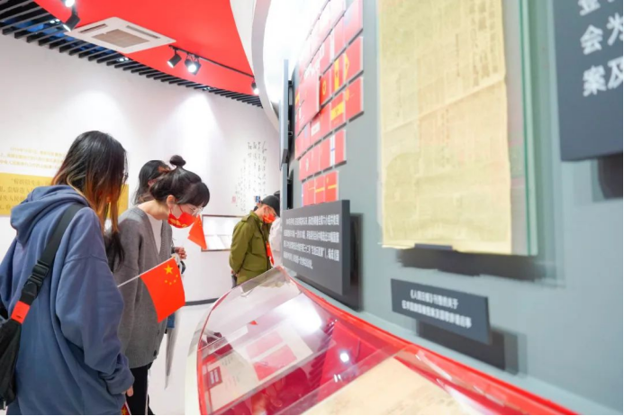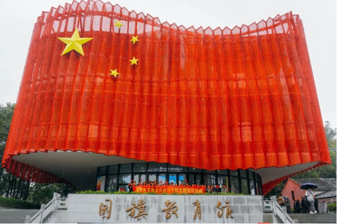 为深入贯彻习近平新时代中国特色社会主义思想,认真贯彻落实党的二十大精神,2022年11月2日下午,kaiyun开云官方网站学生党员来到了全国首家综合性国旗教育馆——瑞安国旗教育馆,开展“赓续红色血脉 奋进时代征程”主题党日活动。党员们在五星红旗前行注目礼,在巨幅屏幕前体验了一次特殊的升旗仪式,在慷慨激昂的国歌声中齐声合唱,在校友曾联松先生的雕像前追忆国旗的设计历史……凝视着鲜艳的五星红旗,更加坚定了党员们奋进的步伐。 瑞安国旗教育馆位于西山之巅,总建筑面积2600多平方米,其中布展面积近2000平方米。展馆共有4层,以“天圆地方、天瑞地安,鼎盛中华、红旗飘扬”为设计主题。 忆往昔峥嵘岁月,筚路蓝缕、栉风沐雨,不变的是鲜红的旗帜,不变的是华夏儿女赤诚的初心。移步至国旗诞生厅内,讲解员向大家讲述了设计者曾联松从缘起到邂逅、与五星红旗之间的故事。通过五星红旗诞生的故事,党员重温了国旗的设计理念。了解国旗的制作、国旗的涵义、国旗的标准等内容,感受“一旗、一人、一馆、一城”的情缘。 五星红旗在设计上非常讲究,整体布局中偏庄严庄重。该旗采用非对称的设计,旗面左上方缀五颗黄色五角星。一星较大,其外接圆直径为旗高十分之三,居左;四星较小,其外接圆直径为旗高十分之一,环拱于大星之右。利用向心角度变化每一个角都能指向大的五角星,星布成椭圆形,大星导引于前,小星环绕于后,恰似众星拱北斗的红地五星旗,同时以大小之势,呈现出了这组图案的张力与立体感,并在视觉感官上给人以协调和平衡。同时五星红旗又叫红地五星旗,红色代表革命,五颗红星象征着中国革命人民的大团结,是中华人民共和国的象征和标志。它见证着牺牲与奉献,代表着神圣与崇高,寄托着热爱与自豪。 浩渺行无极,扬帆但信风。学生党员们在党旗前重温入党誓词,在馆内外唱响《我爱你,中国》,表达青年学生党员的爱国情、强国志、报国行。 本次主题党日活动,以国旗为主线引导党员深入了解红色政权来之不易、新中国来之不易、中国特色社会主义来之不易,回顾中国共产党带领祖国崛起的历史性时刻。作为新时代的美院学子,曾联松先生让后辈感受到了青年匠人需要的担当和使命。激励青年党员将不断提高专业技能,加强党史学习,提升党性修养,不忘初心,砥砺前行,不负新时代,做好答卷人。