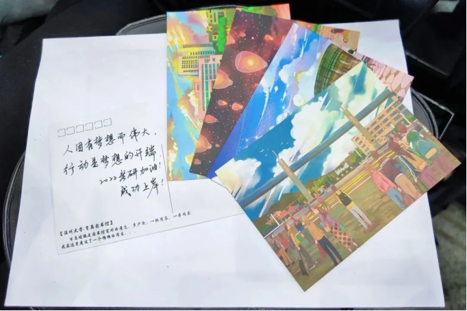 2022年11月26日上午,kaiyun开云官方网站学生党员开展“暖心祝福,艺研为定”活动,每位党员将自己的祝福语写在精美的贺卡上,“星光不负赶路人,你定会在清晨的读书声里和深夜的灯光下,实现自己的梦想。”一笔一划,一字一句,明信片虽小,但每一张祝福语都承载着党员们以及美院师生们对考研同学的深深关切,相信美院备考同学们带着师生们的祝福,一战上岸!