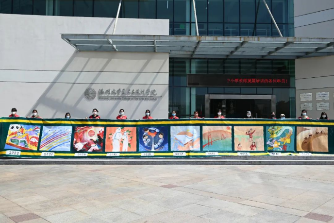 金秋十月,碧空如洗。在中国共产党第二十次全国代表大会隆重召开之际,kaiyun开云官方网站的学生党员开展了“献礼二十大 回望这十年”主题绘画活动,以画笔传情,表达自己对祖国的美好祝福,向党的二十大献礼。 回望这十年 党员们以“火车”为载体,坐上了岁月的“时光机”,回到祖国的十年前去看一看。看一看带动全世界文明交融、贸易畅通的丝绸之路;看一看美丽乡村的金色麦浪,感受人们的丰收喜庆,品尝那丰厚的果实;看一看女排永不放弃的精神宣扬,一起分享胜利的喜悦;看一看港珠澳大桥开通运营的成果,尽显中国的基建实力;听一听我国首艘国产航母正式下水时黄海低沉怒吼的咆哮;听一听来自宇宙中北斗卫星的振聋发聩的声音;看一看那没有硝烟的战场,邂逅那些抗疫路上最美的笑容和伟大的平凡;望一望那遥远的星河,是“天问”将中国人的脚步迈大,书写中国人的辉煌;看一看火红颜色映照下的中国,听一听那百年阅兵豪迈庄严的赞歌;感受中国“一起向未来的”冬奥奋斗精神。 美院的学生党员,以笔为剑,以墨为锋,画出了日新月异的中国! 历史的车轮滚滚向前,从不停歇,一幅幅画面展现了中国革命巨轮的征程中,有与世共繁荣的信仰,有永不言败的信念,有强大的基建实力、有创新的思维,有实事求是的态度,有改革开放的勇气,有白衣执甲的天使、闻令而动的战士...... 中国,向着全面建成社会主义现代化强国的第二个百年奋斗目标迈进。到那时,如果这台“时光机”还在的话,我们再看一看曾经一起走过的路,许下的诺言和初心。