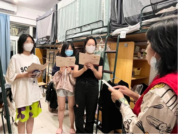 为关怀新生学习与生活,进一步增强学生党员联系群众的主动性,强化学生党员的服务意识,发挥学生党员的示范作用,宣传党建和党组织有关知识。近日,开云官网本研学生党支部组织开展了下寝宣传交流活动,积极地向22级的新生介绍关于学院支部的情况,并热心地为他们解决困惑。