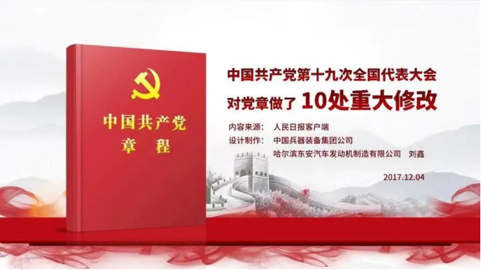 今天杨慧琳学姐从对党章的概述来引出中国十九次对党章的修改,让我知道,党章之所以是中国共产党的根本法规,是全党必须遵循的总规矩,得益于中国共产党无数次的修改实践,让我知道了遵循党章,学习党章是何其的重要,我们要不断加强对指导思想的学习,对中国特色社会主义道路和生态文明建设的学习,并深刻理解党的建设总要求,在以后,我会加强对党章的学习,以一名党员的标准严格要求自己,在未来,我们的党章也会随着时代的发展不断修订完善,党章与我们同在!