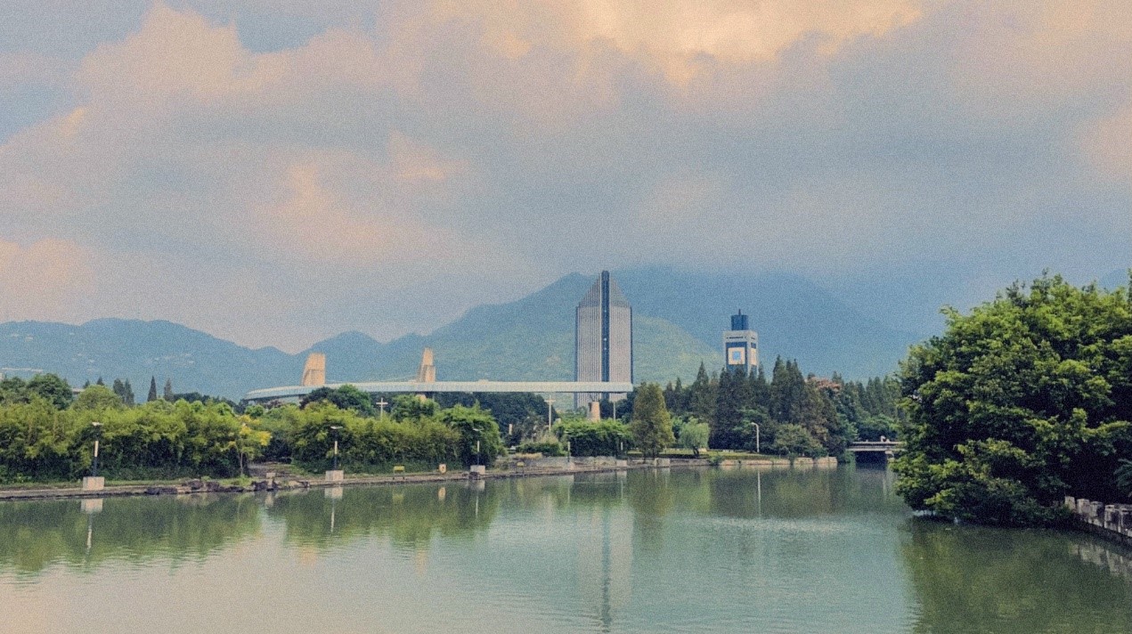 云雾迷蒙,碧波荡漾,温大南校校门将烟雨罗山怀抱,将育英揽入怀中。