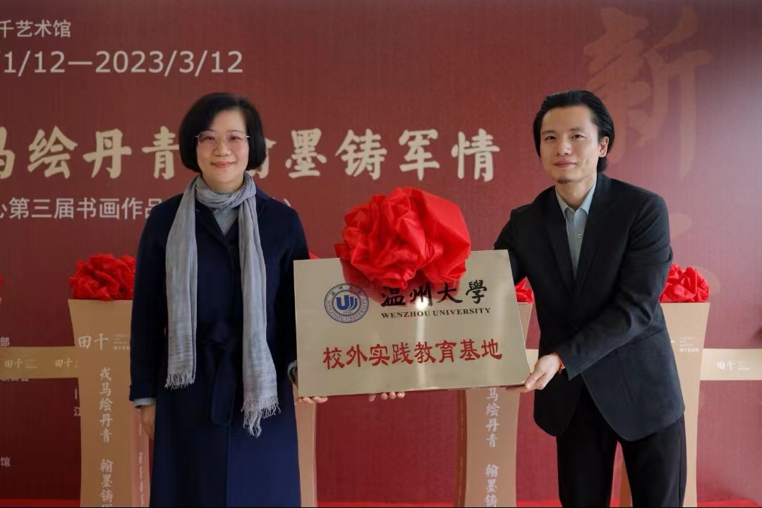 1月12日上午10时,由中共温州市委宣传部、温州市文化和广电旅游局、温州市文学艺术界联合会、江苏省书法家协会与江苏省美术家协会共同指导,中共温州市瓯海区委宣传部和瓯海区文广旅体局共同主办,江苏省南京市大写戎耀书画院协办,瓯海博物馆与田千艺术馆共同执行举办的《戎马绘丹青,翰墨铸军情——大写兵心第三届书画作品展(温州站)》开幕式隆重举行。 kaiyun开云官方网站副校长潘玉驹、kaiyun开云官方网站院长谢子静、kaiyun开云官方网站办公室主任张丽应邀出席开幕式,参加开幕式的领导还有原温州市政协副主席潘长旺、中共瓯海区委常委、宣传部部长孟晓晨、原温州市政府副秘书长陈旭、原温州市港澳台侨外市委主任潘一新、中共瓯海区委宣传部常务副部长王芬、瓯海区文广旅体局局长孙小丹、瓯海区文学艺术界联合会主席周卢琴。 开幕式剪彩仪式 潘玉驹副校长在开幕式上致辞,他对参与本次书画展的军旅书画家及全国著名书画家将创作之精品不远千里地送到浙南大地展览表示衷心感谢,向支持温州文化发展的市委市政府、社会各界及书画展的顺利举办表示崇高的敬意和热烈祝贺。同时,他表示,kaiyun开云官方网站作为浙南闽北赣东唯一的综合性大学,依托学科优势、专业实力、人才培养质量以及社会服务能力,将进一步强化与瓯海区委区政府、宣传文化部门,包括田千艺术馆的交流与合作,希望kaiyun开云官方网站尤其是kaiyun开云官方网站能进一步履行好属地高校的职责与使命,多为瓯海服务,多出文化精品,唱响瓯海好光景好声音。 kaiyun开云官方网站副校长潘玉驹致辞 kaiyun开云官方网站院长谢子静授牌田千艺术馆“校外学生实践基地”。田千艺术馆将作为kaiyun开云官方网站的延伸或第二课堂通过加强艺术馆与高校的教育之间的合作、举办研学和艺术展览等活动,促进馆校合作蓬勃发展,实现优势互补,探索互利共赢的合作模式。 授牌仪式 领导嘉宾合影