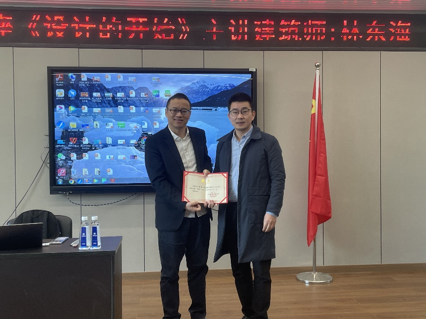 2023年3月3日上午,开云官网环境设计系开展实践教学讲座活动,邀请浙江新创规划建筑设计有限公司创始人林东海先生围绕多年的建筑从业经验分享,为环境设计学生作《设计的开始》的专题讲座。开云官网环境设计专业师生100余人参加了本次讲座,胡文超副院长为林东海先生颁发了kaiyun开云官方网站校外实践导师聘书。