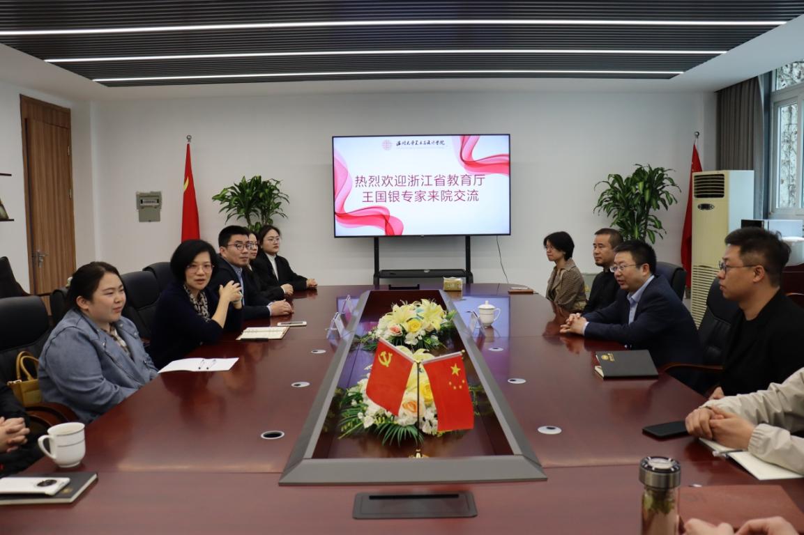 3月12日上午,浙江省教育厅二级调研员王国银教授一行来开云官网指导工作,学院院长谢子静,副院长胡文超及教师代表参加座谈会,讲座由谢子静院长主持。