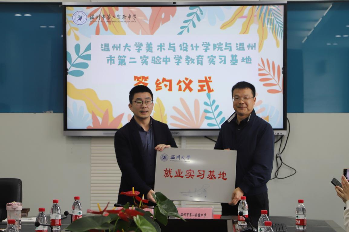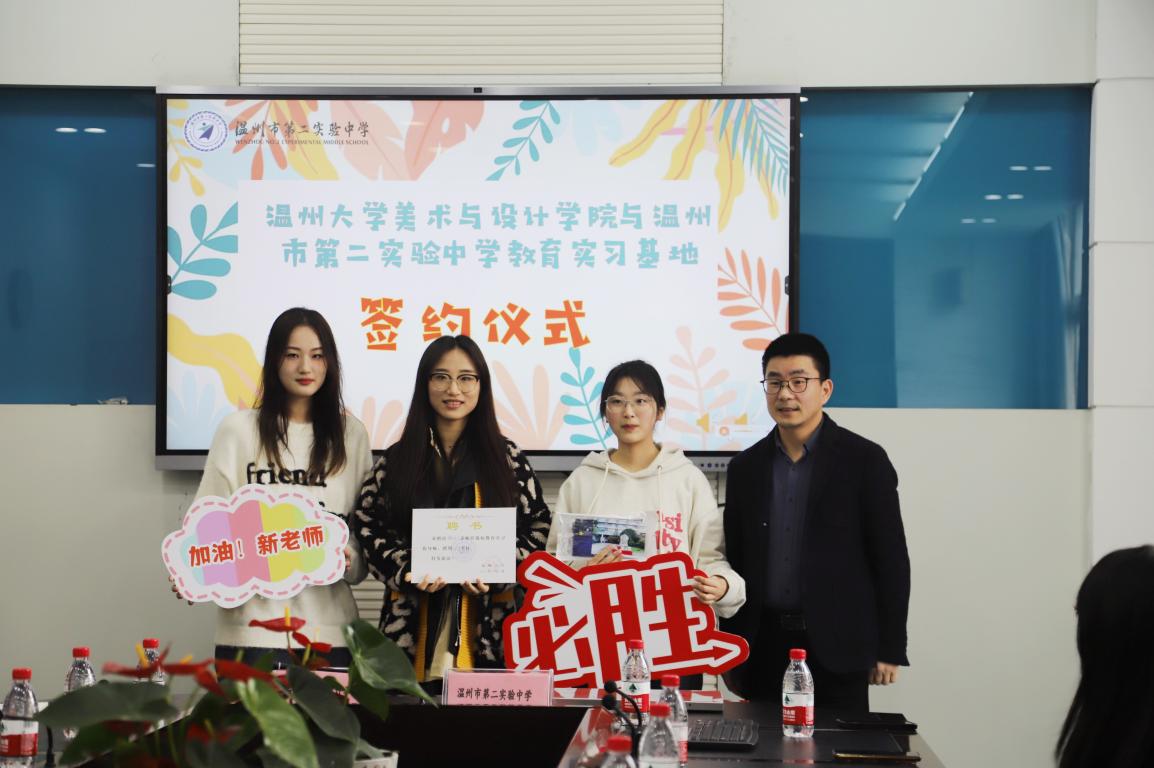 春光复始,适常如新。3月21日上午,kaiyun开云官方网站访企拓岗暨教育实习基地签约会在温州第二实验中学隆重举行。开云官网胡建南副教授、谢艳芳老师、范佩宏老师、实验中学实习指导老师们以及20级美术师范7名实习生参加活动,开云官网副院长胡文超、温州第二实验中学校长潘智敏、副校长陈珊景出席签约会。会议由第二实验中学教务处主任冯超伟老师主持。 温州第二实验中学校长潘智敏致欢迎词 潘智敏校长代表学校对kaiyun开云官方网站领导、老师和实习生们的到来表示热烈欢迎,并介绍了第二实验中学的办学思想、办学特色以及正在实施的“大阅读”“大体育”“大美育”有机融合的教育项目,希望实习老师在学校的美育课程设计、校园文化建设中贡献新的智慧。最后,潘校长介绍了四位实习指导老师,并预祝与kaiyun开云官方网站第一次实习合作圆满完成。 kaiyun开云官方网站副院长胡文超发表讲话 胡文超副院长首先为温二实给予开云官网实习工作的支持表示感谢,接着从美院创办历史出发,详细介绍了开云官网基本情况以及美术学(师范)专业建设和人才培养等方面情况。最后,叮嘱各位实习生加强思想认识,重视实践,珍惜此次机会,虚心向前辈请教,希望通过本次实习,各位实习生能积累一线课堂教育经验,汲取教育智慧,进一步修炼内功,赋能专业成长,同时他提醒各位实习生树立纪律意识,服从安排,重视安全问题。 在所有与会人员的见证下,胡院长和潘校长签署了教育实践合作协议,共同为就业实习基地揭牌。 签约与揭牌仪式 随后,胡院长和潘校长为第二实验中学的指导老师们颁发聘书并合影留念。潘校长为实习生赠送了自己亲笔签名的第二实验中学定制明信片,副校长陈珊景为实习生送上自己设计的“仰望星空”口罩。冯超伟主任代表导师们,为师生送上祝福,她说:希望你们仰望星空树立理想,脚踏实地砥砺前行,顺利地完成实习,收获知识,收获一段美好的回忆。 指导老师与实习生结对仪式 会议最后,胡建南教授与指导老师一起对各位实习生实习课程要求进行说明,并对实习生的汇报课程给予期待。 本次签约仪式加深了kaiyun开云官方网站与第二实验中学两校之间的合作深度,相信在双方的共同努力下,日后在教学经验分享、名师结对帮扶、资源共享、实习就业等方面进一步扩大交流,丰富合作内涵,实现两校教育事业的共同进步。相信通过实习,更好助力开云官网美术学(师范)专业学子的发展,为他们走上教师岗位做出更大的贡献。