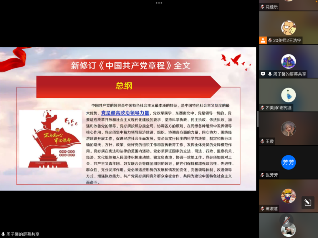 3月26日,kaiyun开云官方网站学生第一党支部在线上通过学习《中国共产党章程(修正案)》,更加深入了解此次党章修改的工作过程、重大意义和主要内容。党章的一次次完善,体现了党的理论创新、实践创新和制度创新的时代特色;彰显了中国共产党人推陈出新、与时俱进的创造精神。