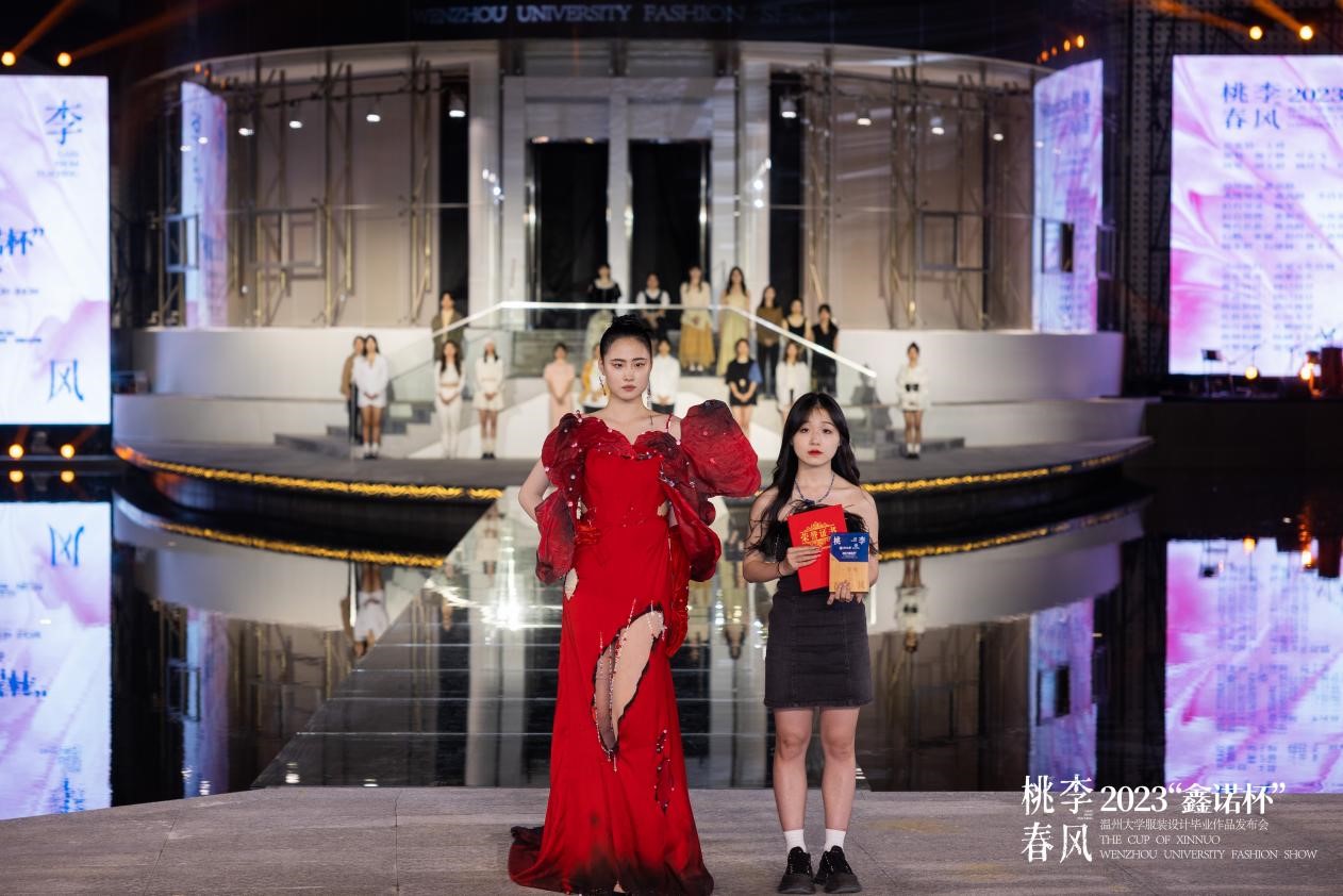 2023年4月20日晚,一场别开生面的时装秀在kaiyun开云官方网站美术馆水上T台隆重举办。中共温州市委宣传部副部长曾伟、温州市文学艺术界联合会党组书记周新波、温州市文化广电旅游局副局长李方喜温州市经济和信息化局总工程师丁建忠等市有关领导作为嘉宾亲临现场,kaiyun开云官方网站副校长蔡曙光、纪委书记杨林书、副校长王舜、副校长潘玉驹、kaiyun开云官方网站院长谢子静等出席活动。此外,还有来自温州各企业家代表、艺术界的名家、设计师、时尚达人,媒体界的朋友们纷纷到场支持,现场近500人,座无虚席。 这场时装秀不同于往年的毕业秀,是首次在高校的美术馆水上T台举行服装设计专业的毕业大秀。本次发布会以桃李春风为主题,由30位kaiyun开云官方网站服装与服饰设计即将毕业的学生主导,在创意和时尚的碰撞中,探寻未来的温州时尚发展之路。 立足当下 畅想未来 kaiyun开云官方网站副校长王舜就本次毕业秀发表了致辞,王舜指出kaiyun开云官方网站充分发挥在鞋革服装等方面优势特色,依托服装与服饰设计国家级一流专业等优势载体,探索重内涵、强实践的人才培养模式,在人才培养、艺术创作和服务地方文化繁荣等方面取得了丰硕成果,为助力温州争创“中国时尚服饰中心城市”、打造“国际化的时尚产业创新先行区”作出了积极贡献,在未来温大服装设计专业的学子也一定能为社会做出更多的贡献。 波光鳞动 艺术定格 在清澈的水面上,模特们身着设计师们的时尚作品,婀娜多姿的走过,展示出了独特的视觉效果。一年一度的服装毕业作品发布会具有重要的意义和作用,是学院人才培养质量的一次重要展示,也是温州服装设计师们交流思想“时尚盛宴”。今年的赛事由海宁鑫诺服饰有限公司支持,为本届30位kaiyun开云官方网站服装设计专业的毕业生提供了一次展示自我和超越自我的机会。本次发布会共有90套作品展出,是学子们对时装设计和艺术观念的一次创新尝试,希望为大众带来更多不同寻常的时尚和艺术体验。 新潮活力 激情澎湃 本次发布会共分四大篇章发布会共分四大篇章,是《种子——厚爱加身,身披铠甲》、《水——澄澈轻快,渗透浸养》、《阳光——欢歌跳跃,花蝶蹁跹》、《参天大树——天地承托,群山巍峨》,作品风格各异,囊括希望与克制、未来和复古、浪漫而先锋、 都市及民俗、前卫融嬉皮、深邃携空灵、觉醒搭混沌等各类元素,展示了新锐设计师对服装艺术的理解和追求,用青春浪漫的遐想,用布帛为载体以创新的剪裁构塑出服装艺术新形象,颠覆人们对服饰的认知,拓展了服装文化的内涵。 大咖云集 异彩纷呈 本次发布会邀请了四位重量级评委,他们是海宁鑫诺服饰的董事长刘军先生和浙江中胤时尚股份有限公司的董事长倪秀华女士,意大利欧洲设计学院的教授兼时尚设计师的菲利波·斯特拉达先生,还有温州服装商会的秘书长陈琦翔先生。 经专家评委评审,欧帅英的作品《破晓》最终摘得一等奖;赵子晴的作品《遇见神都》,林雨欣的作品《溯流光》系列作品获得二等奖;叶庆敏的作品《共生》,曾晨的作品《异世双生》,唐紫怡的作品《傀儡戏法》3套系列作品获得三等奖。每个获奖作品都凝聚着毕业生的灵感和心血,也代表着当代学生的朝气蓬勃。 获得一等奖的设计师欧帅英介绍,作品《破晓》灵感来源于《黑白魔女库伊拉》中火烧白袍这一经典片段,将华丽中带有破坏的艺术风格及夸张的礼服造型运用在本次设计当中,以浓郁的红色为色彩基调,在造型夸张的红色礼服上通过泼墨、灼烧等破坏面料的方式对礼服进行二次创作,来表达“破晓”这一主题,打破传统高级时装设计思维,使礼服有更多可能性,打造强烈的视觉冲击。 桃李不言 春风不语 桃李不言,下自成蹊。本次毕业展离不开服装设计学院的各位老师在背后的辛勤付出,他们带领着学子们克服重重困难,由懵懂慢慢走向成熟,直至他们能够走上社会,独当一面。 春风不语,即随本心。学子们从面对毕设的迷茫到一件件成品的产出,为梦想的奋斗只有开始,没有结束。这些作品是他们结束本阶段学习的最优秀的成果,也是进入下一阶段学习最好的敲门砖。