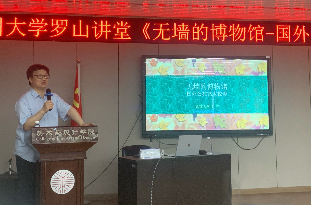 5月28日下午,北京大学艺术学院教授、博士生导师、教育部美术类专业教学指导委员会副主任委员丁宁教授莅临我校“罗山讲堂”,为广大师生带来“无墙的博物馆——国外公共艺术掠影”学术讲座。本场讲座系kaiyun开云官方网站90周年校庆系列学术活动之一,由副院长顾任飞教授主持,学院教师、硕士生、本科生80多人参加。