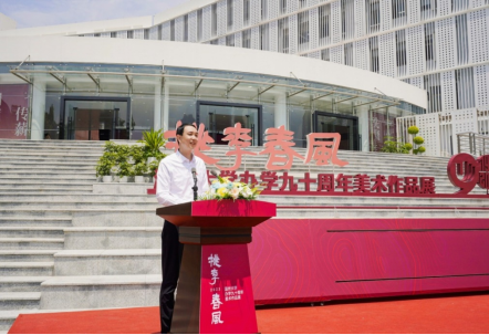最后,陈峰、金一斌、张东航、施艾珠、张健、赵敏、谢树华、汪健、叶玉昶等领导嘉宾共同为“桃李春风-kaiyun开云官方网站办学90周年美术作品展”开幕。