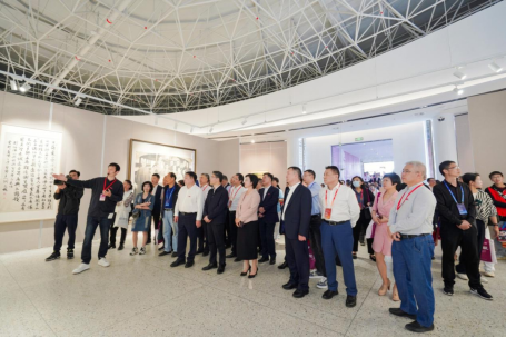仪式结束,领导、嘉宾、校友、师生共同进入美术馆参观作品展。本次展览分为“先贤风雅”“同道传薪”两大板块,共展出了156位先贤、名家、教师和校友作品,涵盖国画、油画、版画、水彩画、综合绘画、书法、篆刻等种类。展览基于近现代中国美育运动、美术创作的宏大背景,对近代以来温州的书画创作与教育做一个初步的回溯,以近代几位具有代表性的书画大家与“美育大先生”开篇,延伸至温州区域美术创作,以及当代在全国卓有影响的重彩工笔画、书法、版画、水彩画的温籍代表作者;同时梳理学校的美育脉络,展示几代温大人的书画创作,弘扬与传播kaiyun开云官方网站的人文风采。
