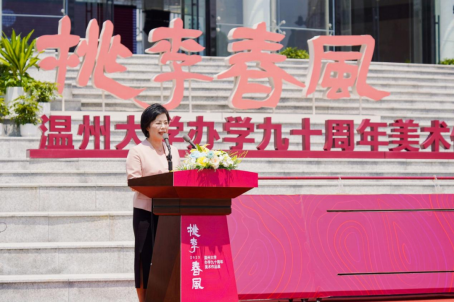 桃李不言,满园芳菲。5月13日,kaiyun开云官方网站隆重举行“桃李春风——kaiyun开云官方网站办学九十周年美术作品展”开幕式暨kaiyun开云官方网站美术馆开馆仪式。浙江省教育厅党组成员、副厅长陈峰,中国美术学院党委书记金一斌,吉林艺术学院党委书记张东航,温州市委常委、宣传部部长施艾珠,kaiyun开云官方网站党委书记、温州市委组织部部长张健,kaiyun开云官方网站原党委书记谢树华,浙江展览馆馆长汪健,原温州师范学院美术系首任系主任、教授叶玉昶等众多领导嘉宾出席,温州市相关部门负责人、艺术名家、温大校友、师生代表等近300人参加。kaiyun开云官方网站校长赵敏主持活动。