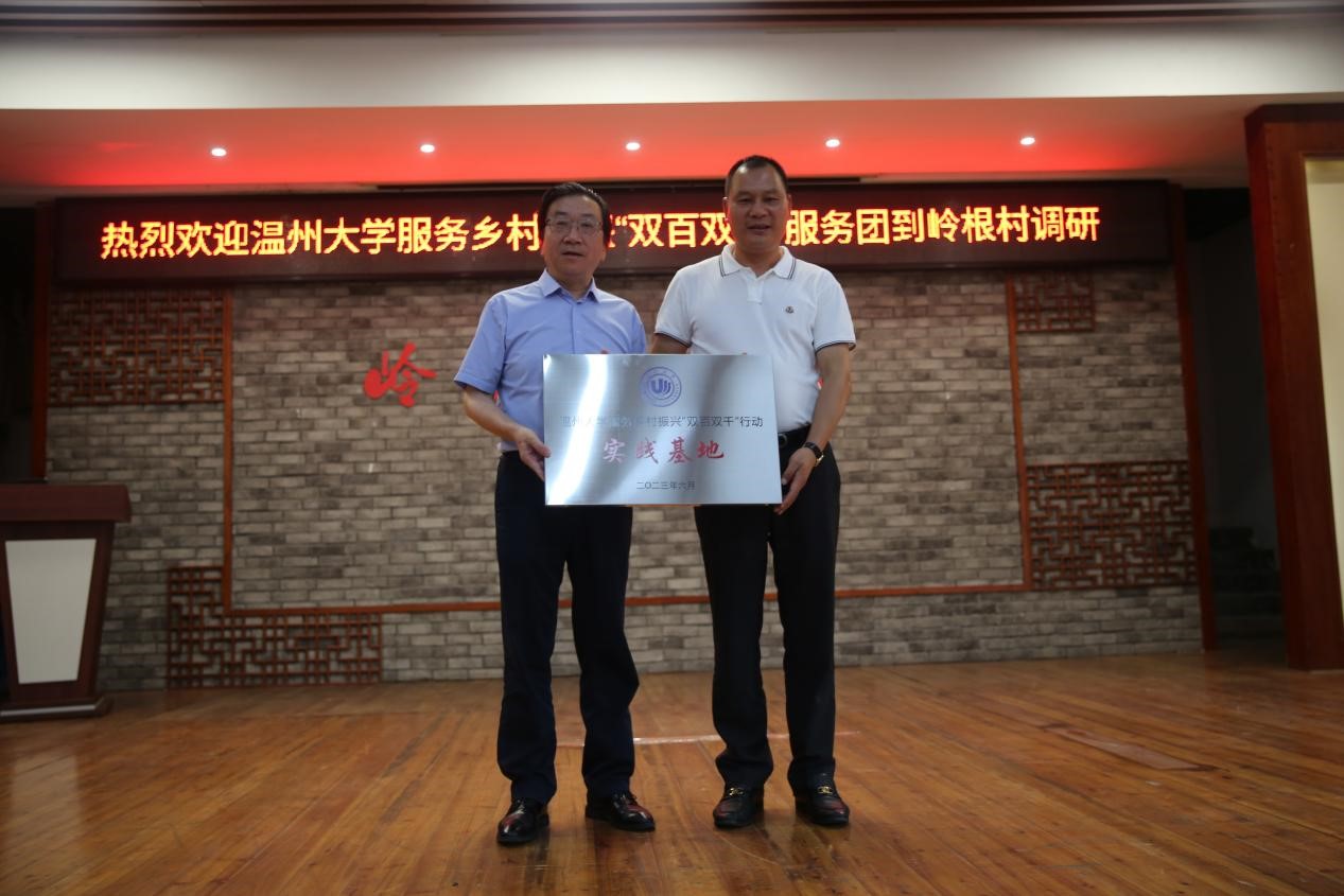为深入贯彻习近平总书记对浙江“千万工程”的重要指示批示精神,落实中央、省委、市委农村工作会议精神,聚焦温州市党建引领乡村连片提升“六大行动”,促进温州高校助力乡村振兴、助力共同富裕迈上新台阶。6月20日,kaiyun开云官方网站副校长蔡曙光带队“双百双千”kaiyun开云官方网站服务团赴平阳县鳌江镇岭根村开展项目对接调研,平阳县政府副县长屠霁霞、鳌江镇镇长杨启杰、县委组织部副部长余毅、kaiyun开云官方网站机关党委书记组织部副部长李祖祥、kaiyun开云官方网站党委书记叶正飞等陪同调研。