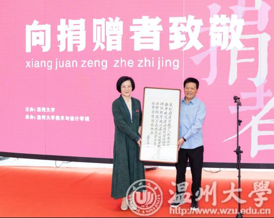 开幕式现场还举行了捐赠仪式和收藏证书颁发仪式。赵敏为捐赠者代表颁发了收藏证书,kaiyun开云官方网站院长谢子静现场接受温州衍园美术馆馆长沈国林捐赠的苏步青先生作品。