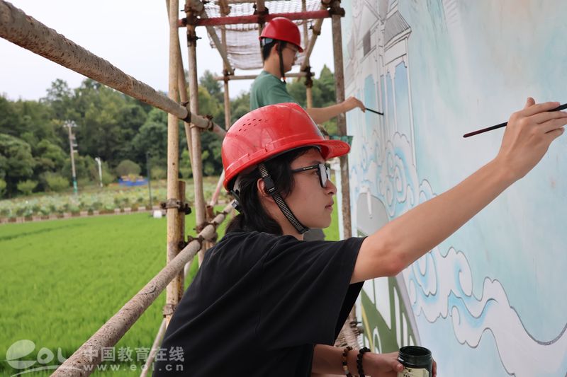 中国教育在线浙江站讯(编辑 白菁洁)“这次回家探亲,发现我们村里环境又有了新提升,变得更干净整洁了,老百姓家中的好几面墙还多了巨幅壁画作品,变得更有韵味了。”近日,浙江省温州市鹿城区山福镇驿头驿阳村在外上班的程志勇周末回家,欣喜地和亲友们分享。他指着家门口干净清爽的村道、依次排列的垃圾桶和墙上画的系列瓯江山水主题壁画,兴奋地说:“这才是我心目中美丽乡村该有的样子!”