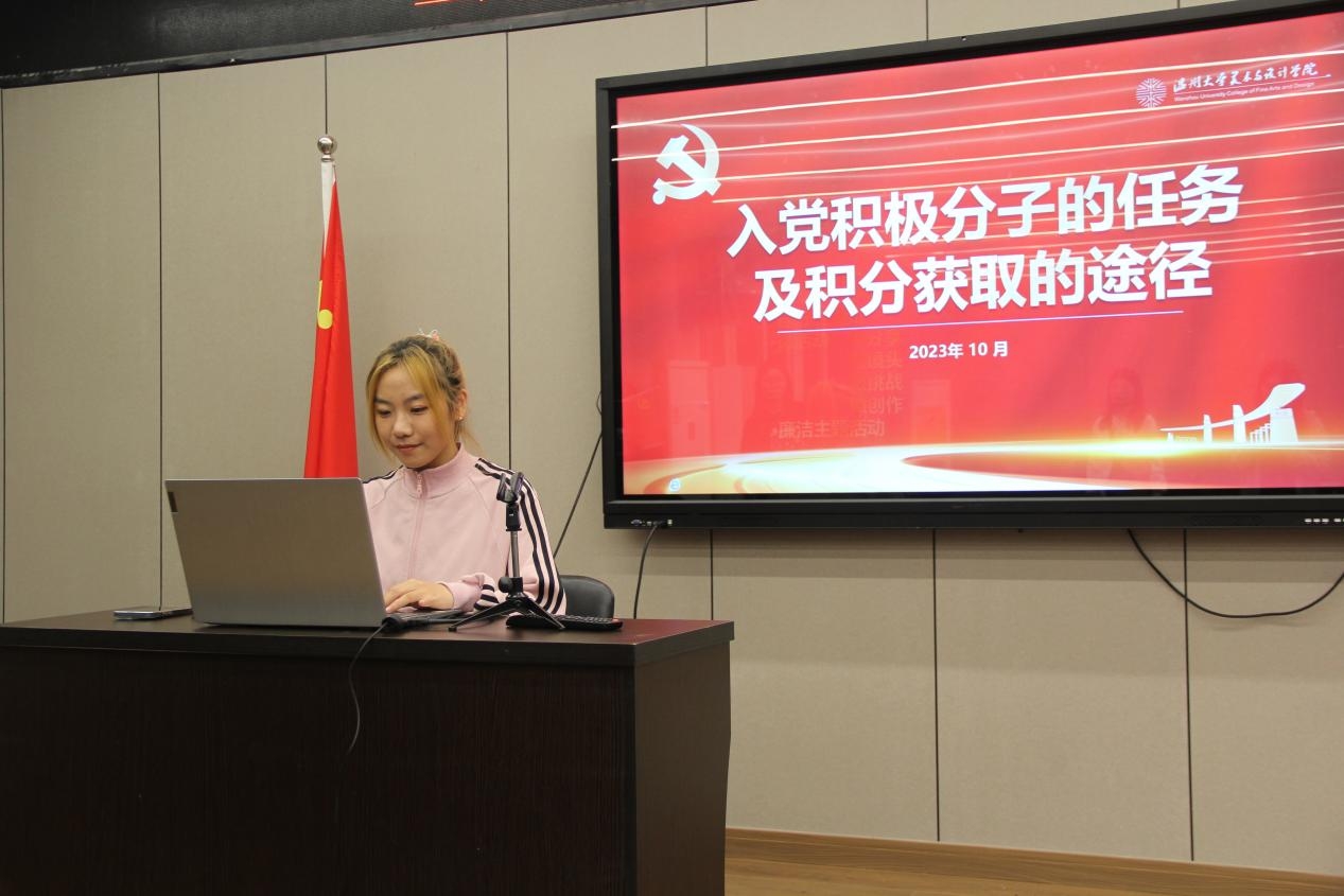 为帮助入党积极分子参与党内有关活动,明确入党流程、了解党员责任和义务,以思想引领实践。10月29日晚,kaiyun开云官方网站于2B-4001会议室召开入党积极分子培训会议。本次会议由党员服务中心义工活动部部长蔡美智同志主持,各部门部长和入党积极分子出席。 会议首先由党员服务中心综合管理部张鑫妍同志介绍入党积极分子的考核管理方法。接着由党员服务中心义工活动部部长蔡美智同志向入党积极分子细致地解读入党积极分子的培养教育内容与相关内容填写。最后由党员发展部的部长周祎婧同志介绍入党积极分子的培养教育与发展流程。通过本次对积极分子的培训教育,不仅有效地传达了身为入党积极分子应增进“致广大而尽精微”的实干精神,还勉励各入党积极分子争创“积跬步以至千里”的实干业绩。 本次会议旨在贯彻落实习近平新时代特色社会主义思想,帮助入党积极分子明确目标,夯实基础。引导入党积极分子们坚持不懈地用习近平新时代中国特色社会主义思想武装头脑、解决问题,进一步增加“思想凝聚力”,为中国共产党的发展增添新生力量。