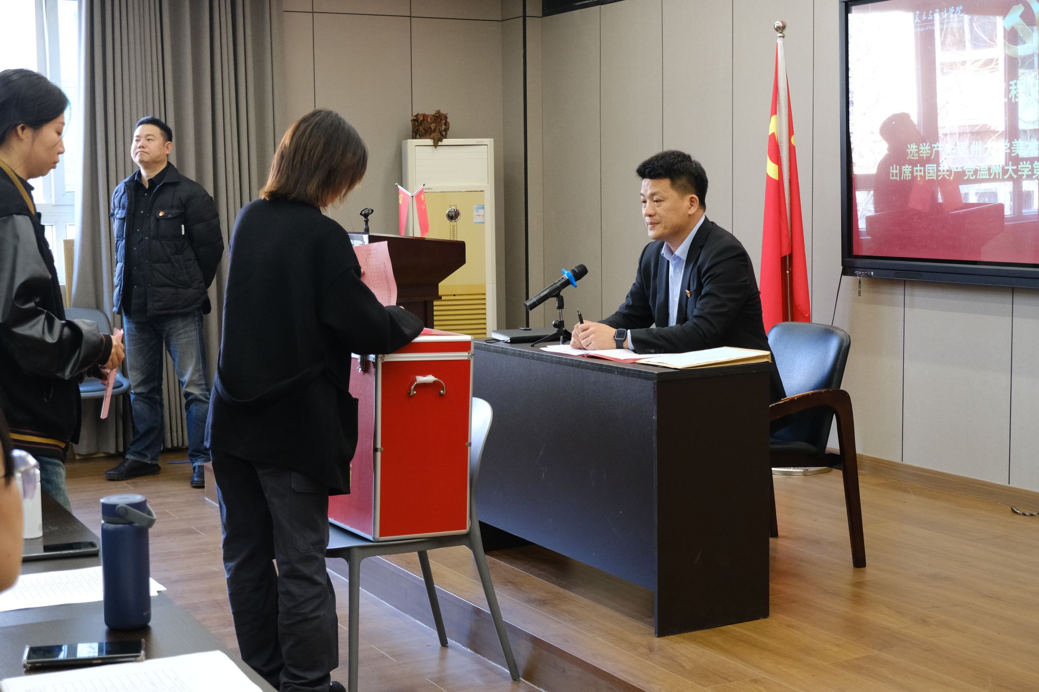 为了迎接我校第三届党代会顺利召开,根据校党委有关文件,3月20日下午,kaiyun开云官方网站于2B4001举行出席中国共产党kaiyun开云官方网站第三次代表大会代表选举会议,学院全体师生正式党员共计117名参加,本次会议由学院党委书记叶正飞主持。大会严格按照《中国共产党章程》、《中国共产党基层组织选举工作条例》的有关规定和《中国共产党kaiyun开云官方网站第三次代表大会代表代表产生办法》(温大党委发〔2024〕8号)的要求进行,分别审议通过了《kaiyun开云官方网站党委出席中国共产党kaiyun开云官方网站第三次代表大会代表选举会议选举办法(草案)》、总监票人、监票人、总计票人名单,宣布计票人名单。叶正飞书记对kaiyun开云官方网站党委出席中国共产党kaiyun开云官方网站第三次代表大会候选人预备人选的产生过程进行介绍后,全体正式党员按照座位顺序依次进行了无记名投票,通过差额选举的方式进行民主选举。投票环节结束后,在监票人的监督下,计票人进行计票。最终,会议选举产生kaiyun开云官方网站党委出席kaiyun开云官方网站第三次党员代表大会的5名正式代表。计票期间,全体党员学习观看了全国两会精神相关视频。两会是全国人民十分关注的政治盛会,是与时俱进、民主团结、求实鼓劲的大会。此次会议对于进一步动员和激励全国各族人民全面贯彻落实党的精神和落实“十三五”规划新举措,高举伟大旗帜,继续解放思想,坚持改革开放,推动科学发展,促进社会和谐,夺取全面建设小康社会新胜利,具有十分重要的意义。通过认真学习全国两会精神,大家都为祖国取得的辉煌成就感到自豪,同时对国家未来的发展坚定信心。本次会议各个支部秉持公平、公正、公开的原则,充分体现选举人的意志,党员正确行使民主权利,推进会议圆满举行。全院师生党员表示将以更加务实的态度、更加高昂的斗志、更加澎湃的热情,迎接学校第三次党代会的召开。