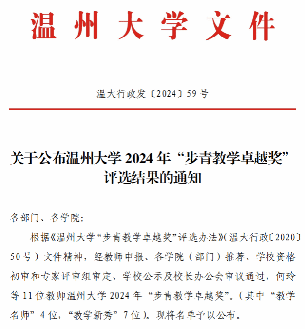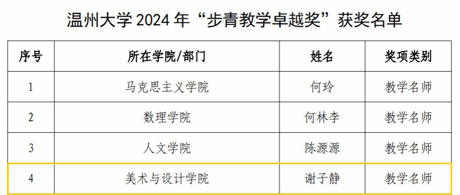 热烈祝贺开云官网院长谢子静同志荣获kaiyun开云官方网站“教学名师”荣誉称号!