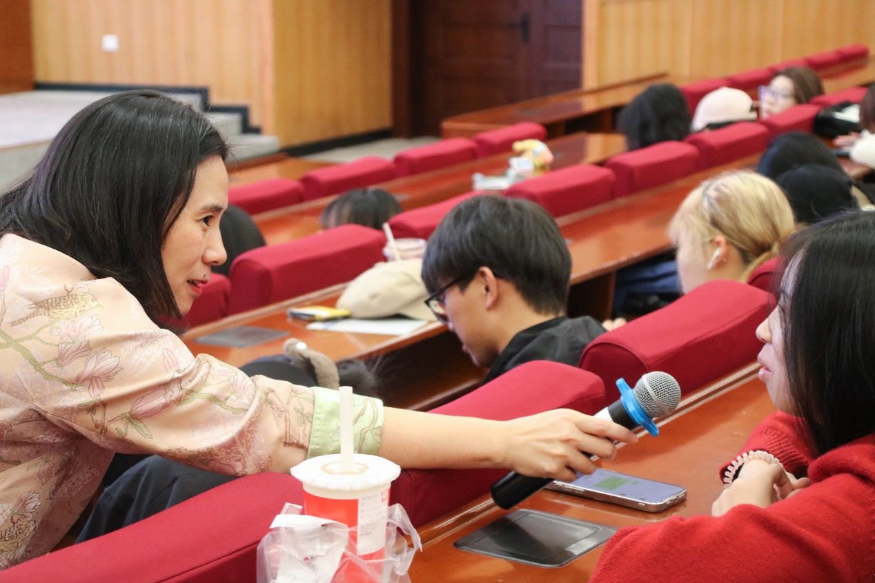 为了帮助同学们更好地理解这些要素,朱老师通过生动的案例和互动,引导大家思考如何在自己的生活中实现“断舍离”。她通过“破窗理论”论证脏乱空间会产生负面能量漩涡,告诉同学们时刻整理自己身边的环境的重要意义。朱老师通过层层递进的提问让同学们从日常生活里的蛛丝马迹扩大到对自身心绪的整理上。同学们纷纷分享了自己的日常感受,她鼓励大家要学会整理的艺术,进行自我调适,不断提升自己的幸福感。