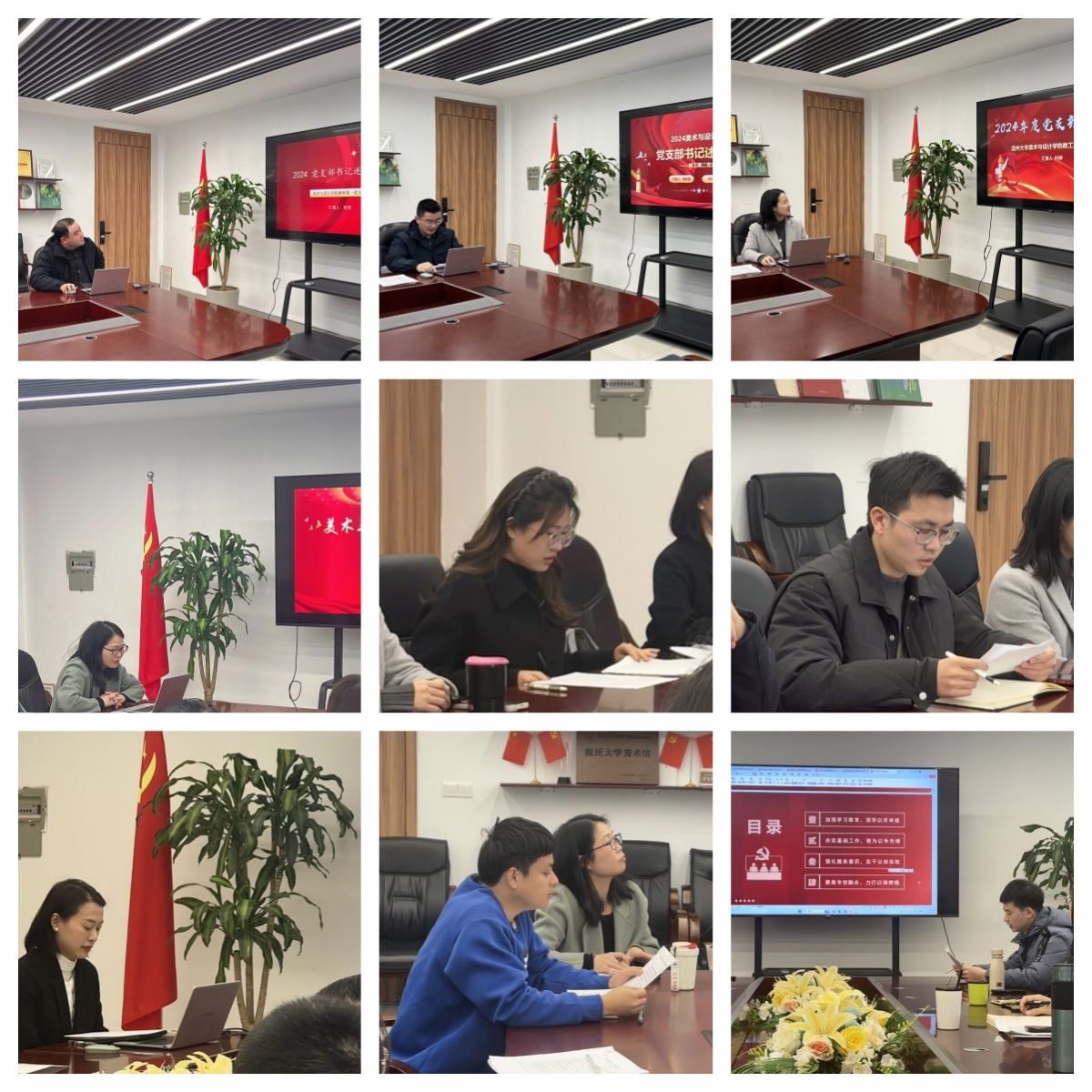 会上,9个在职党支部书记通过PPT演示+汇报的形式,围绕着2024年支部履行党建责任情况、基层党建成效情况、数字党建推进情况及查摆解决问题情况等进行汇报。