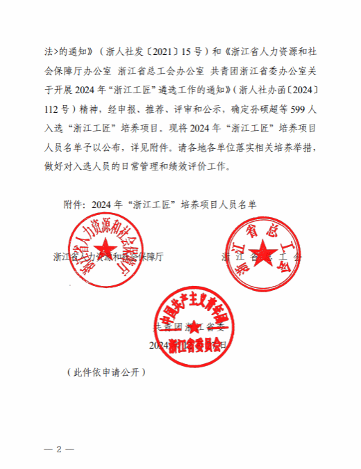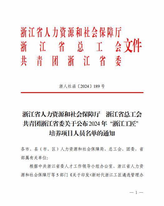 日前,根据浙江省人力资源和社会保障厅2024 年“浙江工匠”培养项目人员名单,开云官网祝忠良老师名列其中。
