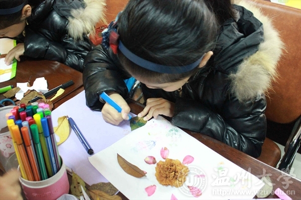2017年3月18日,温大kaiyun开云官方网站"艺家人"青年志愿者协会成员和志愿者们共同前往梅泉社区文化礼堂,进行了以“有趣的叶子”为主题的手工DIY活动。 活动在欢声笑语中拉开序幕,小组代表周岚茜同学以一组树叶画引入今天的主题,倡导小朋友们走进大自然收集各种各样的树叶,细心观察,并对所收集的树叶进行初步了解;接着引导小朋友们观察自己的树叶,并和其他小朋友交流,讨论出更好的制作方法。每个小朋友都有不同的想法:“我想制作一个皮卡丘,我想制作一个长胡须的猫咪,我想制作一个海底世界”。在志愿者们的引导下,小朋友们根据自己的想象,用粘、剪、画相结合的方法,巧用树叶制作出各种图形的“树叶画”,有的小朋友用蜡笔先画图后用叶子进行装饰,有的直接将叶子剪出自己所想要的形状,多种不同方法的运用使整幅画面生动起来。在活动期间,志愿者们各司其职,充满热情。 此次支教活动的目的是为了培养小朋友们从小热爱大自然的感情,锻炼他们学会观察,善于发现,动手动脑的能力,在玩耍中学会欣赏并感受春天的美丽,激发热爱自然,热爱生活的情感。通过指导小朋友们掌握树叶贴画的制作方法、技巧,利用落叶进行美的再创作,开发他们丰富的想象与创造力,培养其发现美,创造美的能力,并养成小朋友们团结协助的精神品质,感受到参与活动的乐趣和成功的喜悦,并学会大胆地表达自己的感受。文:王 伟 图:朱灵睿
