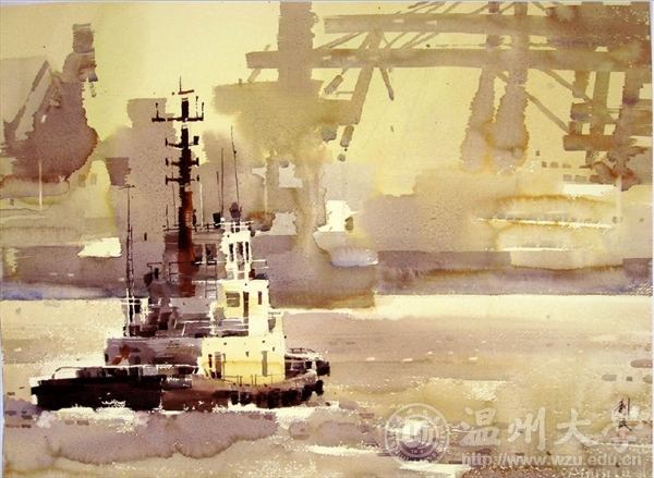 2012年《东方大港》入选浙江省第十三届水彩画大展获学术奖