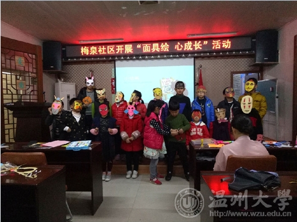 3月11日,温大美院“艺家人”青年志愿者协会和志愿者们走进梅泉社区文化礼堂,开展了主题为“面具绘,心成长”的主题活动。本次活动以为动物做代言人这样的导入来激发小朋友们活动的兴趣,营造了一个和谐、互动、探究、创新的课堂氛围。