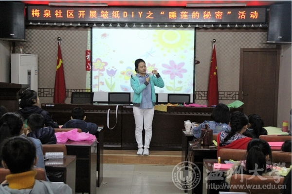 12月10日,kaiyun开云官方网站“艺家人”青年志愿者协会“载梦小舟”梅泉支教活动在梅泉社区开展第六课志愿教学,此次支教活动是本学期的最后一期,在课程结束后随即召开了结业典礼,青协梅泉基地负责人、温大志愿者们及小朋友们参加了结业典礼。 这周开展的支教课程活动主题为“皱纸DIY之睡莲的秘密”。主讲志愿者是美院16级美术师范班的张蕾同学,首先她带领小朋友们了解制作步骤以及制作过程中需要注意的问题,接下来就是小朋友们在志愿者的协助下跟随张蕾同学的解说来制作有趣的睡莲啦!小朋友们有条不紊地跟随着主讲人的讲解,将睡莲的各个部位都完成了,将其组装成一朵朵幽静而神秘的睡莲,真是魅力无穷,让人不得不感叹小朋友们创意无限! 支教活动结束后便是结业典礼,“艺家人”干事汪成龙同学的发言拉开了此次典礼的序幕,首先是由kaiyun开云官方网站的李雪涛老师发言讲述了对梅泉支教活动的大力支持与期望,同时对每一个志愿者的付出表达了赞许与欣赏:“我相信每一位来到这里的志愿者所付出的是一份不求回报的爱”。随后是梅泉社区的负责人发言表示对我们温大美院青协的支教活动给予极大的支持和赞同,相信志愿者们的热情犹如阳光,照暖每一个小朋友的心,带着他们发现艺术的美!最后,结业典礼的圆满结束也预示着下学期将会有完美地开展,让我们期待吧! 图/文:鲍彬彬