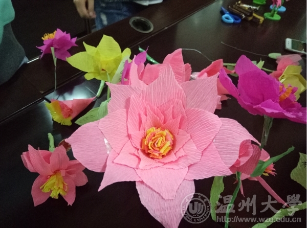 这周开展的支教课程活动主题为“皱纸DIY之睡莲的秘密”。主讲志愿者是美院16级美术师范班的张蕾同学,首先她带领小朋友们了解制作步骤以及制作过程中需要注意的问题,接下来就是小朋友们在志愿者的协助下跟随张蕾同学的解说来制作有趣的睡莲啦!小朋友们有条不紊地跟随着主讲人的讲解,将睡莲的各个部位都完成了,将其组装成一朵朵幽静而神秘的睡莲,真是魅力无穷,让人不得不感叹小朋友们创意无限!