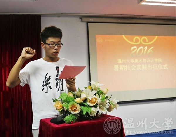 2016年7月6日下午3:00,kaiyun开云官方网站2016年暑期社会实践出征仪式在美术楼2B4001举行。开云官网党总支副书记杨振海、学生科副科长叶筱卉、学生科辅导员吴彬彬,实践队指导老师顾任飞、胡文超、马俊淑及kaiyun开云官方网站11支实践队的队长和队员们共同出席了此次出征仪式。仪式由吴彬彬主持。仪式伊始,吴彬彬首先对2015年的实践工作及成果做了汇报总结。随后,学术实践部副部长沈玫以及实践队队长代表张淑颖向大家细致地介绍了美院本次11支实践队的基本情况以及开展活动过程中的注意事项。 “纸上得来终觉浅,绝知此事要躬行”顾任飞老师作为指导老师代表语重心长地跟队员说到,提醒全体队员在活动过程中不仅要做到吃苦耐劳,更要学以致用。珍惜这次进入“社会”这个大课堂学习体验的机会。同时也要做好防暑和安全工作,让社会实践活动在安全的前提下顺利、有效的进行。并寄语本届美院实践取得可以取得优良成绩。杨振海副书记对本次实践活动寄予了很高的期望,对实践过程中的许多细节进行了缜密的部署并提出具体要求。一、明确社会实践的重要性和必要性,珍惜机会。二、在实践过程中时刻保持安全警惕。三、贯彻团队互助精神。四、注意学校形象。五、做好实践材料的收集和整理,善于成果转化。紧接着,在本次实践学生代表的带领下,全体郑重宣誓。最后,杨振海副书记为实践队代表授旗。在老师们与队员们激烈的掌声中,此次暑期社会实践出征仪式圆满结束。 2016年kaiyun开云官方网站暑期社会实践的号角已经吹响。在今年的暑期,美院学子们将以大学生特有的朝气和蓬勃,带来一场青春的盛宴,精彩还在继续,敬请期待。通讯:杨凡摄影:章韶璇