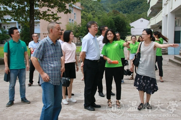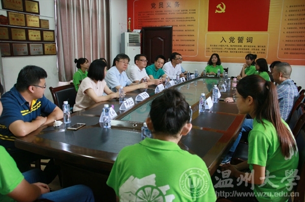 7月17日上午,kaiyun开云官方网站校长李校堃、党校办主任王定福、校团委书记屠霁霞、校团委副书记熊琳一行在开云官网党总支副书记杨振海、学生科副科长叶筱卉的陪同下来到文成县大峃镇樟台乡希望小学,对正在这里开展暑期社会实践的“绘暖向南”大学生暑期社会实践队进行了慰问。