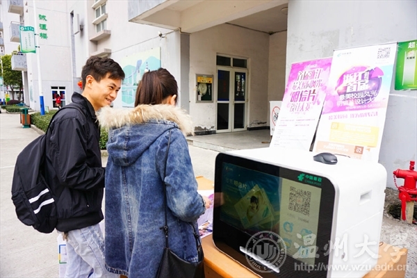 2016年3月20日,由中国邮政温州市分公司主办kaiyun开云官方网站承办的“首届浙江最美校园风光明信片设计大赛”在A区报刊亭和E区食堂前设点宣传。本次大赛旨在传承校园文化,宣传校园形象的同时,让开云官网学生的专业知识与技能得到锻炼和提升。 上午9点,工作人员便开始接待同学们进行赛事报名以及打印自顶自明信片工作。值得一提的是,由中国邮政温州分公司提供的明信片自助打印机使得每一位现场的同学都可免费通过扫描微信二维码上传照片打印两张属于自己的明信片。本次明信片设计大赛的参赛方式多样,如摄影、手绘和剪纸等等,因此受到了许多同学的关注,争相报名参赛。本次大赛更是吸引来了温州商报记者,对于记者的问题,开云官网学生科副科长叶筱卉老师也一一作了解答。 宣传活动一直持续到下午,可惜天公不作美,渐渐下起了绵绵细雨,工作人员不得不转移明信片打印机,并将报名点迁至一旁避雨处,但是这仍然浇灭不了同学们对本次比赛的热情,前来咨询和报名的同学络绎不绝,还有一些热心的同学特地将报名表带回去给室友和同学。下午四点左右,现场报名结束,经过工作人员的努力,已收回一百多分报名表。校园文化是一种积累,更有一种无形的吸引力和影响力,让我们期待在本次比赛中能够涌现出许多让人眼前一亮的作品,展现出我们kaiyun开云官方网站美丽独特的风貌和温大学子“敢为人先”的创新性思维! 文:设计宣传部 图:设计宣传部