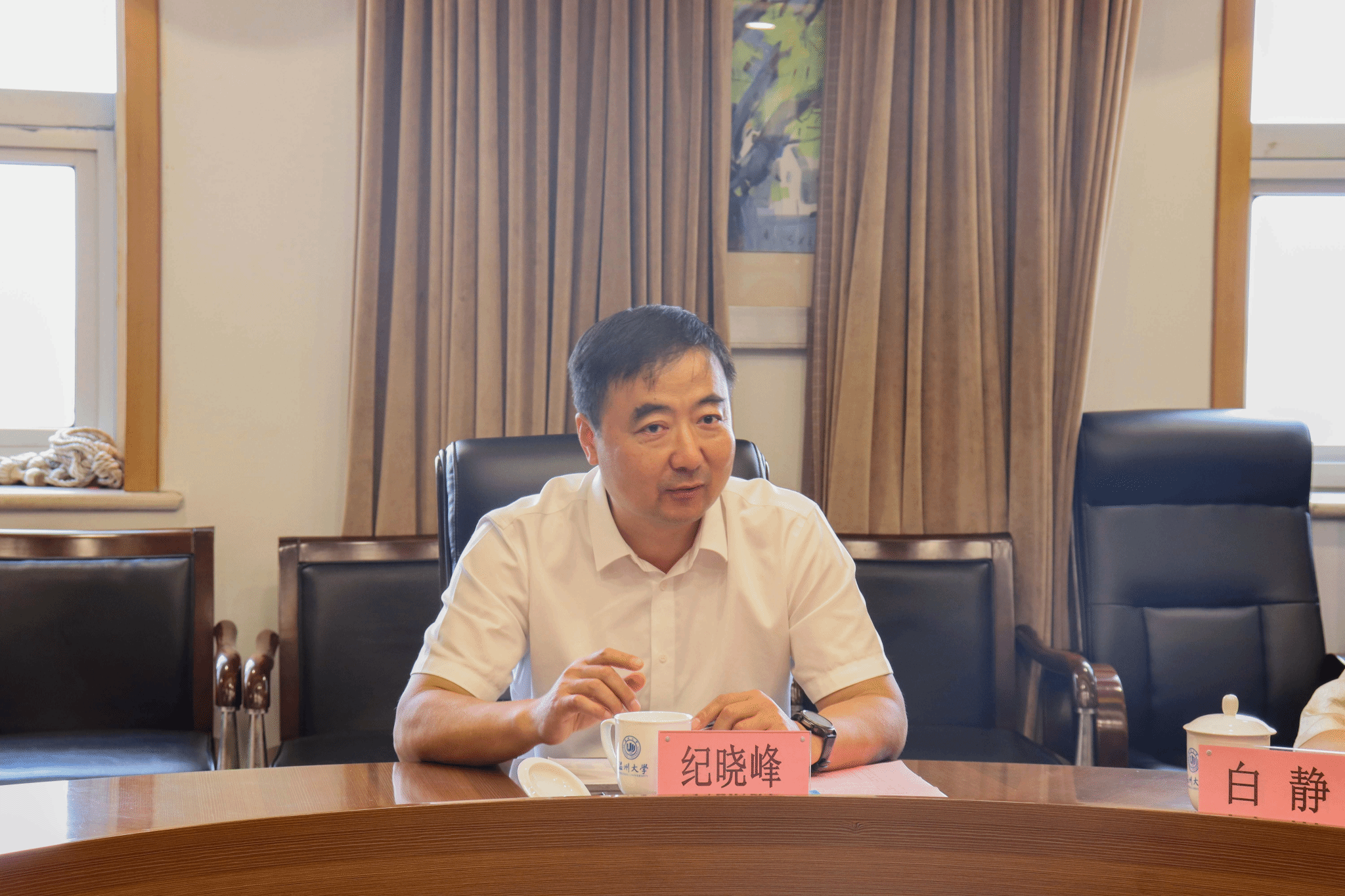 在会谈前,纪晓峰会长实地参观了kaiyun开云官方网站校史馆、kaiyun开云官方网站美术馆,深入了解学校办学历史与文化积淀,对学校的办学历史、环境和特色的学科布局给予充分肯定。
