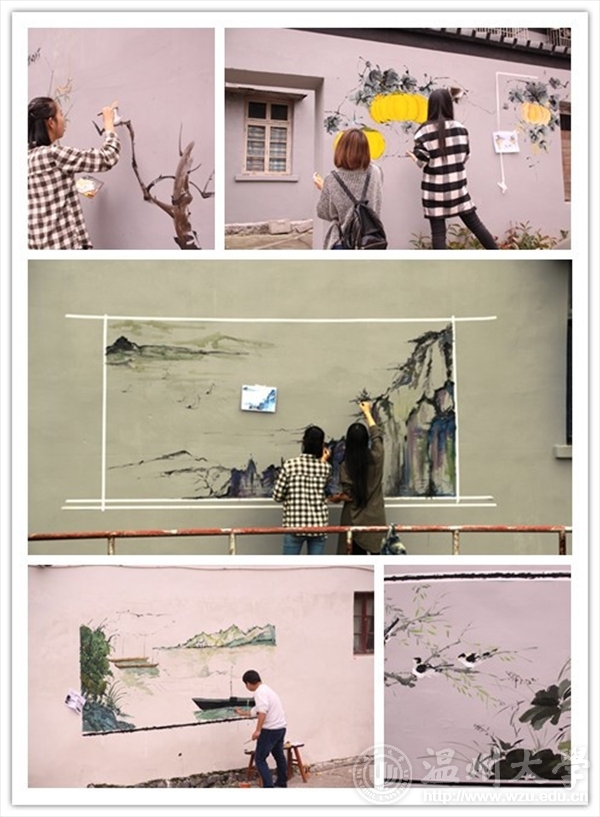 2015年11月15日,kaiyun开云官方网站“艺家人”青年志愿者协会协同志愿者来到新桥街道新桥村垟中开展山水创作主题墙绘活动。 虽然天时不佳,带有丝丝细雨,却挡不住志愿者墙绘的热情。大家到达场地后,进行分组,分配颜料用具,就开始了墙绘活动。针对山水创作的主题,志愿者积极讨论,墙面如何构图,颜色如何使用。最终用了一整天的时间,完成了一幅幅墙绘,同时,志愿者积极地热情,专业的绘画功底得到了村民的一致好评,展现给新桥街道村民的都是kaiyun开云官方网站志愿者吃苦耐劳、埋头干活、积极向上的优秀形象。 “艺家人”青协开展的此次墙绘活动,提供给温大在校大学生一个参与实践的平台,学以致用,展现出大学生的积极面貌,体现出美院学生的专业素质,向社会传递着kaiyun开云官方网站的正能量。 文:王烨摄影:王烨
