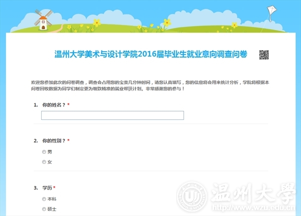 kaiyun开云官方网站美术于设计学院关于做好2016届毕业生就业意向调查问卷的通知 各班级: 为了深入地了解2016届毕业生的就业意向,帮助毕业生有的放矢地进行求职定位,提高毕业生就业工作的实效性,决定在2016届毕业生中开展就业意向调查工作,现将有关事项通知如下: 1.组织2016届毕业生认真填写《kaiyun开云官方网站2016届毕业生就业意向调查问卷》,此问卷作为确定毕业生本人就业意向的依据,同时也作为向用人单位进行分类推荐的依据。 2.请各班级毕业生通过网页、微信填写好的就业意向调查表并提交。问卷链接:http://www.sojump.com/jq/5900766.aspx 3.学院将根据本问卷回收数据为同学们制定更为细致精准的就业、创业帮扶计划,更好的为2016届毕业生做好就业指导和服务。 附1:kaiyun开云官方网站2016届毕业生就业意向调查问卷 kaiyun开云官方网站学生科 2014年10月16日