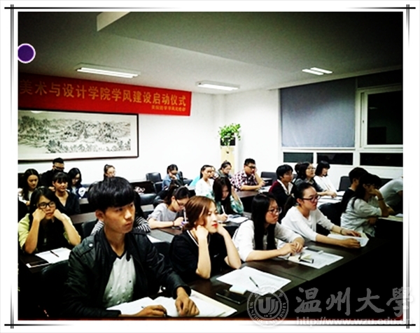 2015年9月22日晚上,kaiyun开云官方网站学风纪检部在美院2B4001成功召开了“迎评促建kaiyun开云官方网站学风建设启动仪式”。本次活动邀请了kaiyun开云官方网站学生科科长叶筱卉老师,学院辅导员于静老师,五班代表13服设3班的何奕彬学姐,十星代表学习之星丁凯迪学姐以及超豪支部代表上官雯雯。 首先,本次会议由叶筱卉老师向同学们进行致辞。叶老师以自己的切身经历向同学们讲述了自己刚来温大美院时治理美院学风纪检的方法,又以“三叶草理论”和“政审”一词提出了学风纪检对学生的重要性,也让同学们了解到学风纪检工作的意义,并寄言“希望每个同学都能找到学习的积极性以及投身到学风纪检中来。”之后学风纪检部的副部长沈宇烽表述了十月份以后的考勤活动;辅导员于静老师对“五班十星”的评选办法进行说明,下面发言的丁凯迪学姐以“功夫不负有心人”劝解学弟学妹们,何奕彬学姐则是以“一切以班级荣誉为第一目标”的班规经验分享给大家。 其次,是问题交流环节,在坐的班干部积极提出了自己的疑惑,各嘉宾也都从各方面对同学们的问题进行了解答。 最后,会议在叶筱卉老师的总结和对同学们的建议圆满结束。本次“迎评促建kaiyun开云官方网站学风建设启动仪式”向各班代表传达了五班十星评比的各项内容,让同学们也了解到学风建设的重要性和必须性,同时也意识到建设良好的学风,积极营造优良的校风,以饱满的热情和积极向上的精神风貌迎接2015-2016学年以“关心教学、关爱学生、规范管理、提升质量”为主题的学院学风建设年需要我们大家共同努力,也是我们每一个美院学子的责任和义务。