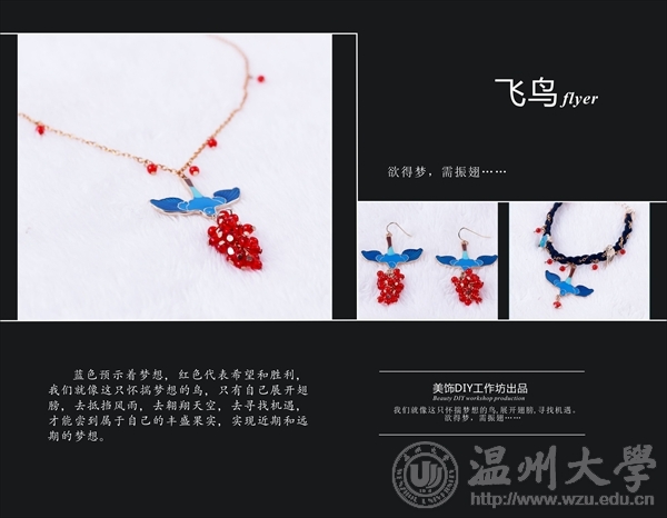 一、团队名称 美饰DIY工作坊二、工作室简介 美饰DIY工作坊成立于2013年11月。以首饰定制结合个人形象设计为主要运营模式,旨在为顾客提供独一无二的个性时尚搭配。纯手工定制的魅力在于独具匠心的设计、有人情味的过程,无声的自我表达。我们相信每一件饰品都是个性的诉说,是一场你与时尚的约会,我们在MS等你。 产品主要针对喜欢个性、慢节奏的20-40岁的大学生及轻熟女性。 工作室目前稳定运行,拥有研发单品135件,系列80套。入驻创业园,校级项目结题,正在运行国家级项目。多次受邀参加创意文化展,与Vivi&sisi服装高定店合作,参加首饰比赛获得一、二、三等奖,被弗洛拉聘请为首饰设计师,我们的产品多次出现在校园文化节及社团活动中。三、团队组成 杨冰 沈美妍 李艳燕 夏俞瑜王新四、成果展示五、创业领域 首饰定制、形象管理、DIY体验六、创业感言 创业是好的。它让你在别人玩的时候去工作,它让你在作业完成的时候去工作,它让你在睡觉的时候去工作,它让你在所有的时候都在想它爱它呵护它。 有时候特别痛苦,有时候特别开心,有时候又后悔了,有时候又觉得不够努力。百味杂陈,冷暖自知。过程中想放弃是一定的,但想要坚持的结果也是必须的。走走停停,踽踽独行,青春嘛,总该拼一把! 美饰DIY工作坊二维码 供稿:美饰DIY工作坊本版编辑:张昇责任编辑:团学设计宣传部终审:李艳燕金李斌