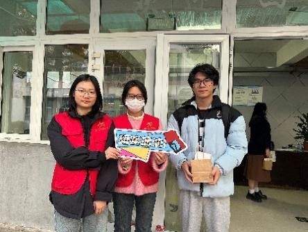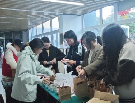 岁末寒意渐浓,考研的征程也进入了最关键的冲刺阶段。为鼓舞正奔赴梦想的2026届考研学子,传递学院的温暖陪伴与深切祝福,12月17日下午,超豪学区先锋党支部发起“暖冬研途·逐梦同行”暖心活动,学院各学生支部党员、志愿者共同参与。 毕业生公寓楼下,身着红马甲的志愿者们早已就位,将一份份寓意深远的礼物细心分装、摆放得井井有条。贺卡藏着手写的祝愿,是“落笔有回响”的美好期许;分装袋收纳着点滴心意,寓意整理思绪、从容应考;金黄的橙子,谐音“成”功,寄托着心想事成、硕果累累的美好祝愿;小巧的多肉盆栽,象征着考研路上的耐力与执着;简约的台历,静静伫立,提醒着时光有序,步履不停。、活动在温馨而简洁的仪式中拉开序幕。同学们陆续前来,从志愿者手中接过这份暖意融融的礼物袋,眼中闪烁的是惊喜,亦是感动。方寸贺卡,笔墨传情,既是初心也是星光;一袋温暖,收纳从容,既是整理也是陪伴;青青多肉,寂静生长,既是坚持也是希望;一页台历,时光可见,既是规划也是陪伴;橙香满怀,心想事成,既是祝福也是硕果。愿这份心意,凝聚成一股“你不是一个人在战斗”的坚实力量,让紧张的冲刺阶段,多一份从容与温度。初审:谢巍 复审:刘伟金 终审:叶如芳