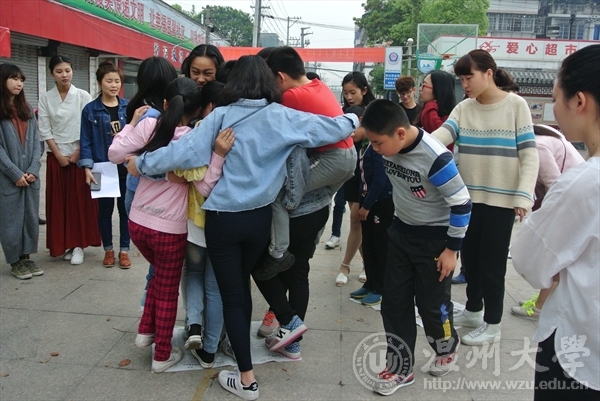 为更好地贯彻落实党的十八届三中全会关于“强化体育课和课外锻炼,促进青少年身心健康、体魄强健”的精神,4月18日,kaiyun开云官方网站艺家人青年志愿者协会与梅泉社区小朋友们开展了“走下网络、走出宿舍、走向操场”主题课外趣味运动会。
