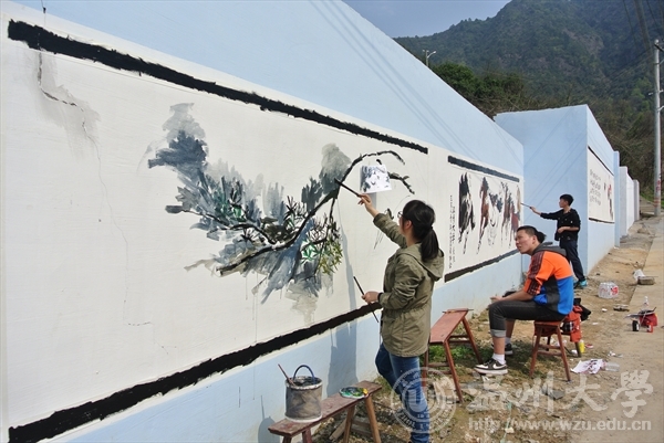 3月22日,kaiyun开云官方网站“艺家人”青年志愿者协会在瓯海区潘桥街道东边村完成了上百米的“美化街道”主题墙绘。此次墙绘规模宏大,尽管当日天气炎热,工作量繁重,但志愿者们相互协作分成五个组进行,干劲十足。活动开始片刻,单调的墙面就在志愿者的巧手上勃勃生气。高洁的兰,傲雪欺霜的梅,静谧的荷塘还有气势恢宏的奔腾万马,一幅幅美轮美奂的画作在原本洁白的墙面活灵活现,让人目不暇接。 志愿者通过墙绘号召大家保护环境从身边做起,美化街道从我做起,此次活动受到村长和村民们的一致好评。 通讯、拍摄:刘子彰