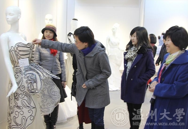2015年1月12日下午,kaiyun开云官方网站院长李运河、副院长蔡可群、党委书记郑彩莲、副书记杨振海、院办公室主任李丽、服装系主任陈明艳等一行人,莅临“衣彩纷呈”课程联展现场参观指导,为此次课程联展拉开了序幕。 《礼服设计与立体造型》《服装面料再造》课程联展,以“衣彩纷呈”的主题,以“培养学生创新创意思维,提高综合应用所学的专业知识,激发学生学习活力”为宗旨。通过礼服、创意装、面料二次创意等设计作品的汇报展出,强化学生的实际动手能力,反应课程改革的成果,并给学生提供了自我展示的平台和互相交流学习的机会。本次展览由11级艺术服装2班24名同学的作品组成。参展的礼服习作共计20件(套),创意装设计24件;面料二次创意设计46件。礼服设计突出艺术手法运用与效果表达,注重品质与流行元素的运用,同时注重搭配与材料的创意创新,强调手工制品的艺术表现手法和多元融合化;面料再造设计以原始面料为出发点,以激发学生无止尽的想象与创造能力为培养目的,强调面料二次设计手法与面料材质的适应性,旨在创作出与时尚接轨并引领潮流的面料创意产品。这些作品反应了学生学习与劳动的成果,也是魏静、陈莹、叶婷三位指导教师细心指导的结晶。