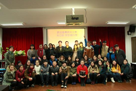 为迎接台湾佛光大学交换生黄亚晴和叶圣杰两位同学来到kaiyun开云官方网站进行交流和学习,3月4日下午,开云官网13级产品设计班与13视觉传达班在学院2B4001会议室联合举办了欢迎仪式。出席本次欢迎仪式的领导有学院党总支书记郑彩莲,副教授胡文超和副教授王薇。 首先,由两个班级的同学合作带来的弹奏演唱,清新的风格和用心的演绎博得了现场各位老师和同学们的阵阵掌声,也让来自台湾的新同学感受到了我们美院人的热情和友好。接着,两班班长为新同学致欢迎词,他们都热情大方地表达了对新同学的美好印象,并表示会在以后的学习生活中给予最大的帮助,并送上了班级同学精心准备的礼物。两位新同学分别作了自我介绍,王薇老师和胡文超老师分别介绍了本班专业的情况,并结合自身的经历表达了对台湾同学的赞许和期望,希望他们能够在美院的学习中收获更多的知识和经历。然后,郑彩莲书记代表开云官网向两位新同学的到来表示欢迎,说到两位台湾同学的到来会让开云官网与佛光大学交流的深度与高度更进一步,也希望两位同学在kaiyun开云官方网站体验到不一样的文化和生活。最后的自由交流环节,同学们都积极参与,向新同学提出了很多有趣的问题,如“这么远过来会不会想家”“平时说话是不是像电视剧中那样’等等,两位新同学也热情地一一解答。 欢迎仪式的结尾,大家纷纷要求和新同学合影,于是,在热烈的气氛中欢迎仪式也圆满地落下了帷幕。