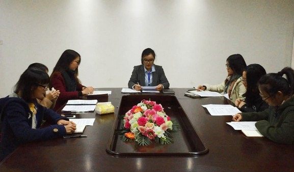 2014年12月22日,12级服装设计与工程一班在E区会议室开展团日活动。本次活动班级同学全员参与,旨在巩固专业知识技能,提高服装英语口语,丰富班级课余活动。 时光荏苒,本班学习服装专业英语已近一年,为了更好地掌握专业知识,能够将书面理论运用与工作实践,特开展此次“英语口语模拟会议”,并录制视频。经过前期的策划撰写、剧本修改、道具准备等一系列工作,视频拍摄于22晚顺利进行。会议共分为两部分,一是为了制定公司来年发展方针的召开的全体主管会议,二是在全体会议后设计部开展的新品研发会。会议期间班级同学根据每个职位的职责发表自己的见解。先由董事长对今年公司运营情况做出了评价,再由各个分管部门的经理根据本部门对公司未来发展提供自己的意见和建议。此外,会议中确定了公司来年致力于高级男装制作的目标,这为设计部更好地开展设计明确了方向。版师、样衣工与买手共同参与,各部门成员在激烈讨论中碰撞出思维的火花,加强了各部门之间的沟通交流, 看似严肃简洁的会议,前期准备近两周,拍摄时间长达五小时,后期涉及视频制作修改等工作。但在活动中真切体会到了整个班级一起参与做好一件事的热情。为了完美呈现活动成果,背后有着不计其数的NG。两年多来班级同学和谐共处、一同进步的精神状态,在此次活动中可见一斑。 本次会议将所学知识灵活运用于实践,不仅提高了同学们的英语口语水平,更加强了同学们对服装公司运作流程的了解,同学们都获益匪浅。为了更好地寓教于乐,班级将持续组织开展类似活动。 附:涉及的职位与人物有: 老板:章健, 设计总监:张佳欢, 设计师:姚玉骏、陈囝 设计助理:姚春岚, 版师:赵灵芝, 样衣工:孙璐瑶, 财务主管:杨冰 人事主管:谷芬芬, 买手:丁相相, 生产厂长:张洲丽, 销售主管:夏俞瑜, 行政总监:王新。