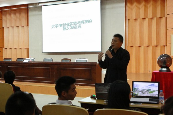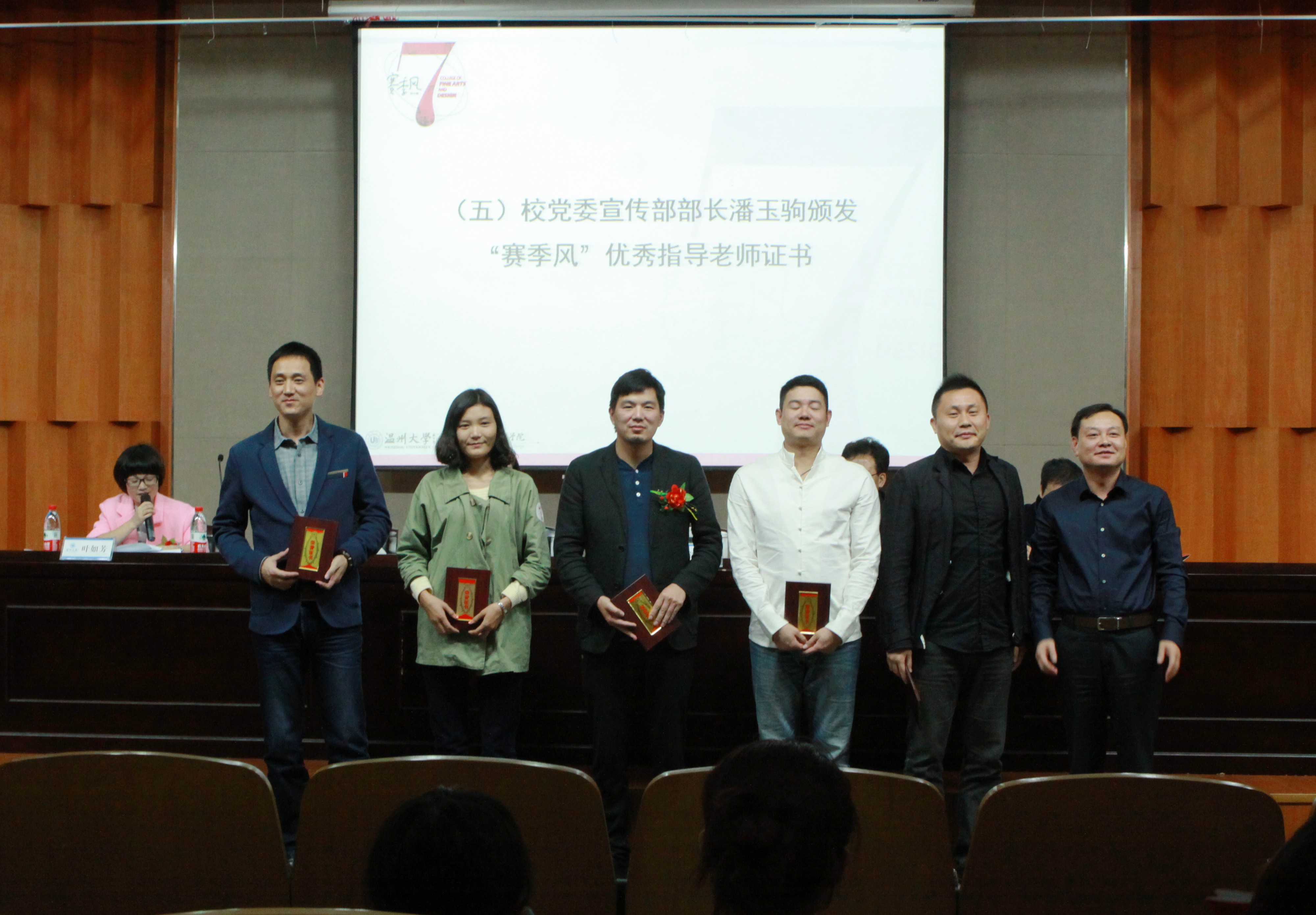 运动的赛场刚刚偃旗息鼓,艺术的赛场即将风起云涌。11月5日下午,kaiyun开云官方网站第七届“赛季风”启动仪式暨2014年度大学生创新创业奖表彰大会在岩松堂雁山厅隆重举行。校党委宣传部部长潘玉驹、校团委副书记屠霁霞、kaiyun开云官方网站院长李运河、党总支书记郑彩莲、副院长蔡可群等领导出席大会,参会的还有“赛季风”各分赛事指导老师、组委会成员,全体参赛学生及2014级新生。