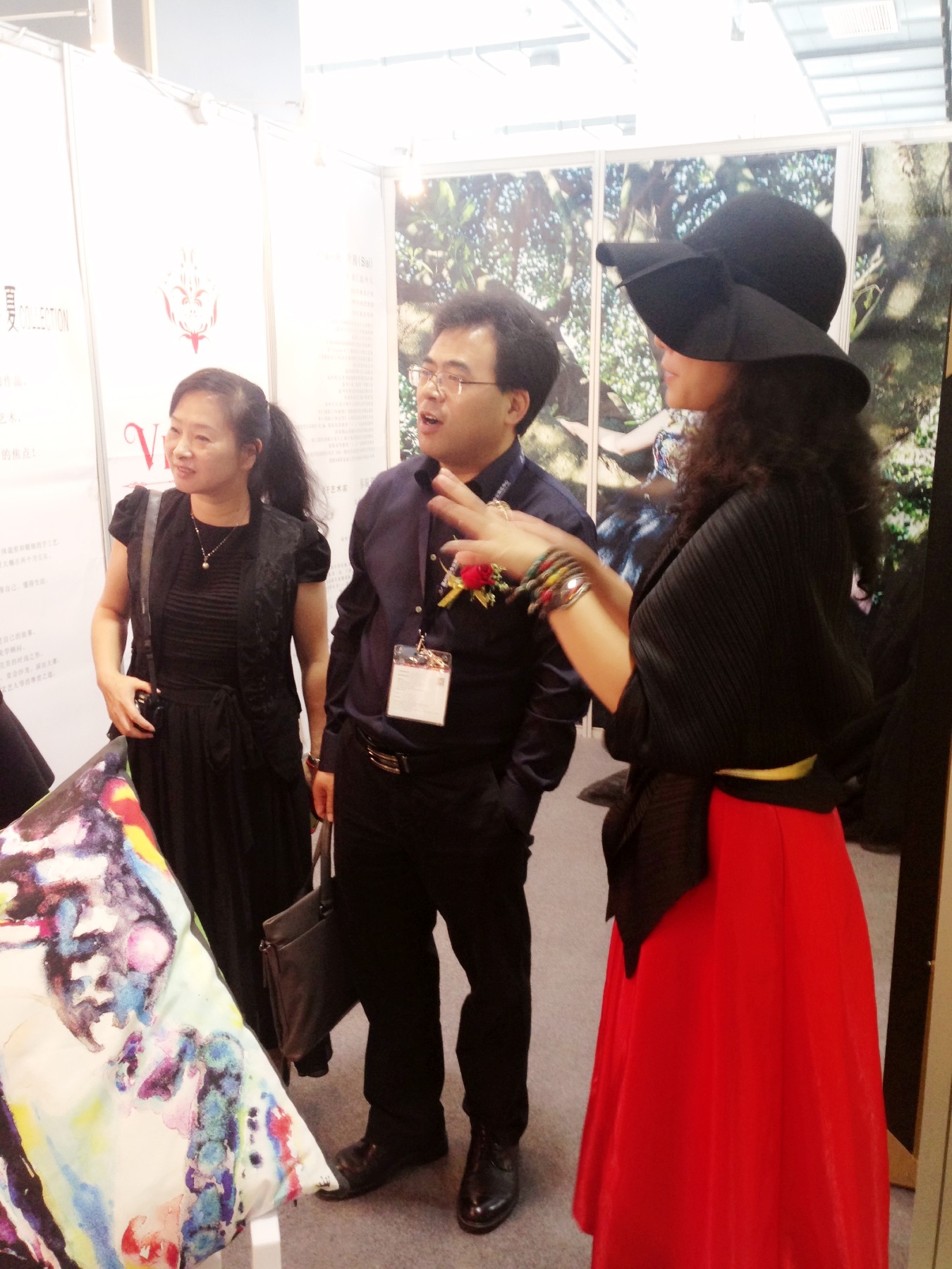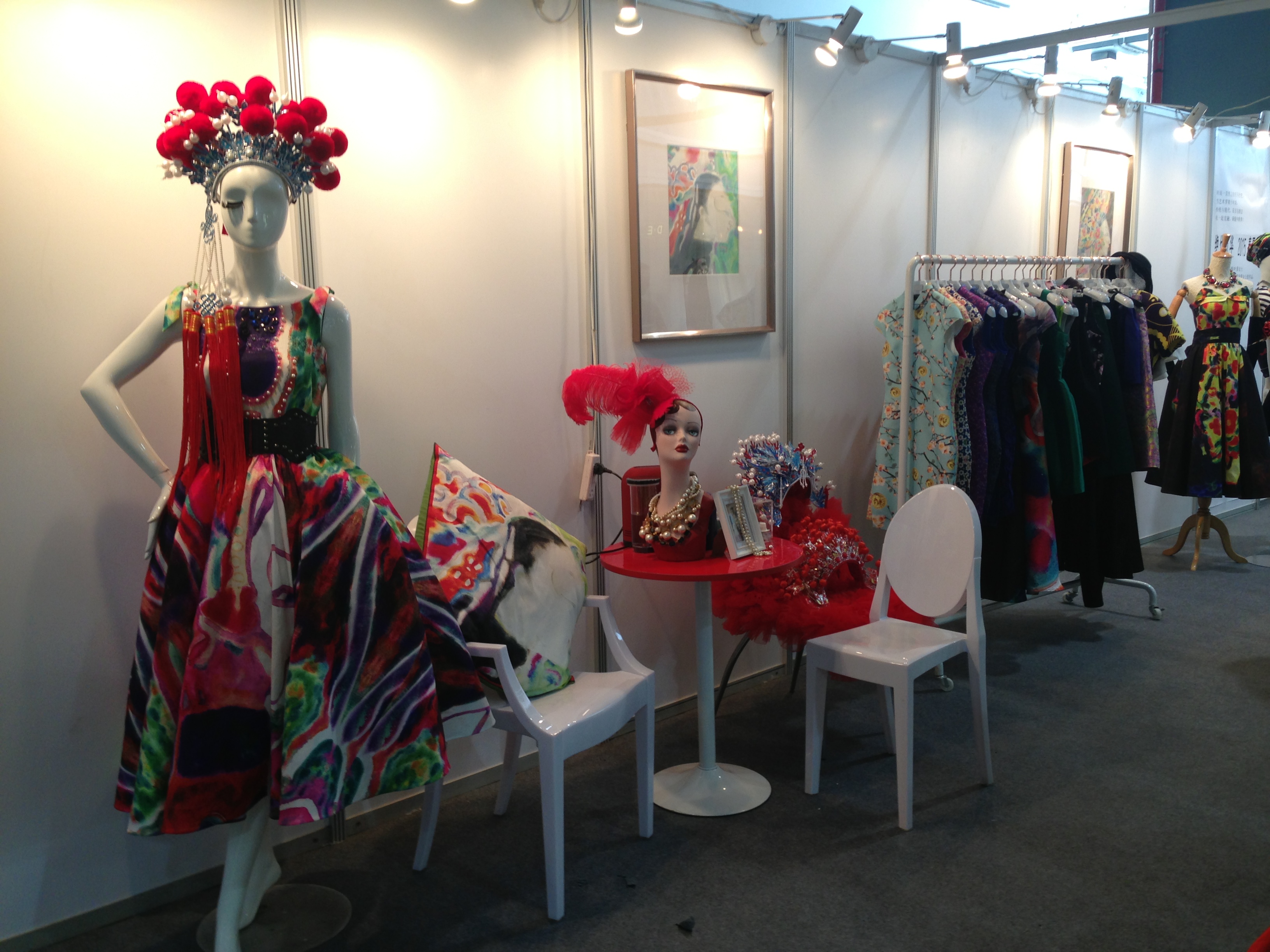 在近日2014温州国际时尚博览会的现场,一个很有特色的展位以惊艳的视觉捕获了参观者的眼球。象画廊、又似戏曲舞台,看似传统却透着时尚,这便是由温大kaiyun开云官方网站副教授叶茜携手著名画家蔡瑞蓉女士(温大美院教授)的“绝代风华”跨界系列作品。她从艺术作品中提炼画面的视觉,让传统民间皮影文化成为时尚艺术,运用现代数码印花的工艺技术以鲜艳的色彩真实的传递了这一季独具魅力的焦点!本次作品叶茜老师同时结合了指导学生的国家创新创业课题的项目“IN-数码印花创意产品研发工作室”,她与参与指导的叶婷老师一起研究数码印花的工艺和面料效果,并让学生参与图案设计及应用,作品有时装、礼服和家纺等应用产品,在工艺制作上也得到了浙江丽丰服装科技有限公司和杭州宏华数码印花的大力支持。温大kaiyun开云官方网站院长李运河教授和服装系主任陈明艳教授特意到场观看,并高度评价!